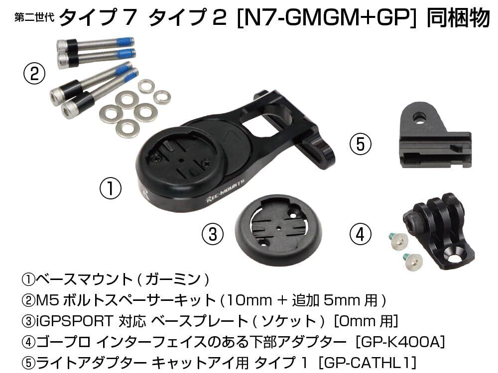 [レックマウント]「第二世代」タイプ7 (N7) ガーミン/iGPSPORT 用 コンボマウント(タイプ2 GP-K400A+GP-CATHL1付き)【N7-GMGM+GP】Edgeシリーズ/iGSシリーズ/BSCシリーズ対応