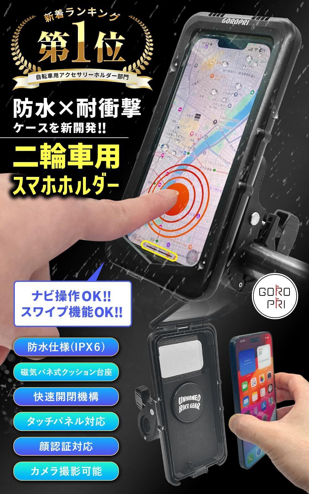 自転車 スマホホルダー 防水 バイク 自転車用 原付 雨除け 防水スマホホルダー 【マグネット式だから快適】 耐衝撃 角度調整が自由自在 超高感度スクリーン 防塵 防汚 7インチ以下対応 (Aタイプ(ハンドルバー))