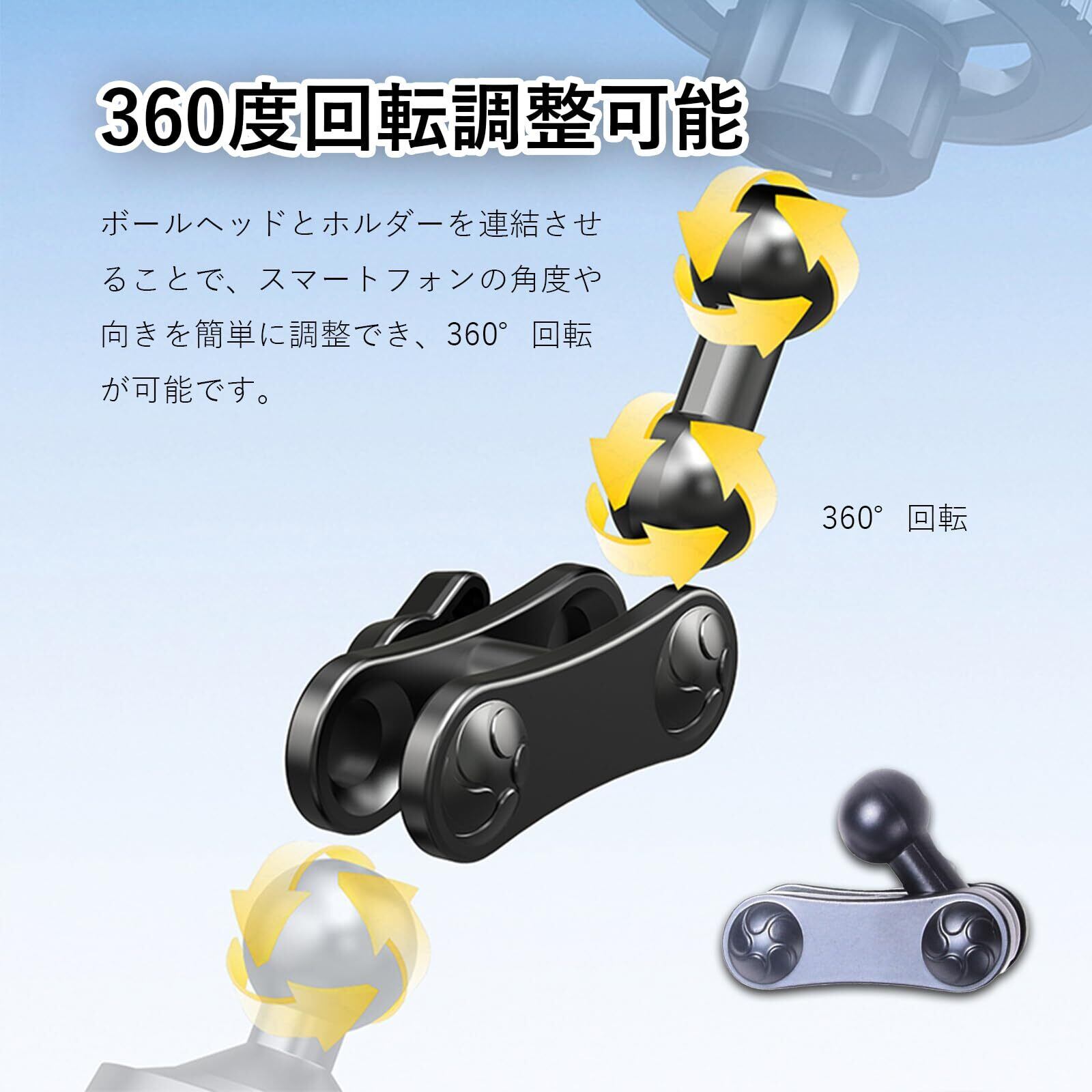 YFFSFDC ボールマウントホルダー 車用 中間マウント 17mm 360度 回転 ボールジョイント 角度調整 取り付けが簡単 スマホホルダー ドライブレコーダー カメラ 自転車・バイク・オートバイクリップマウント マウントパーツ