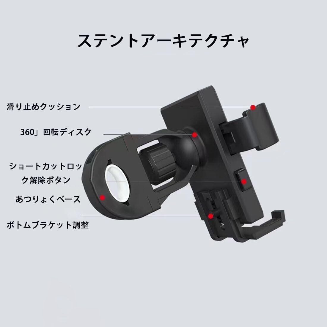 【強固でぐらぐらしない】滑り止めクッションを採用することで、衝撃による騒音を吸収するだけでなく、走行中に端末とブラケットとの摩擦によるけがを防止することができます。スマートフォンをしっかり固定することで、走行中も落下の心配がありません。