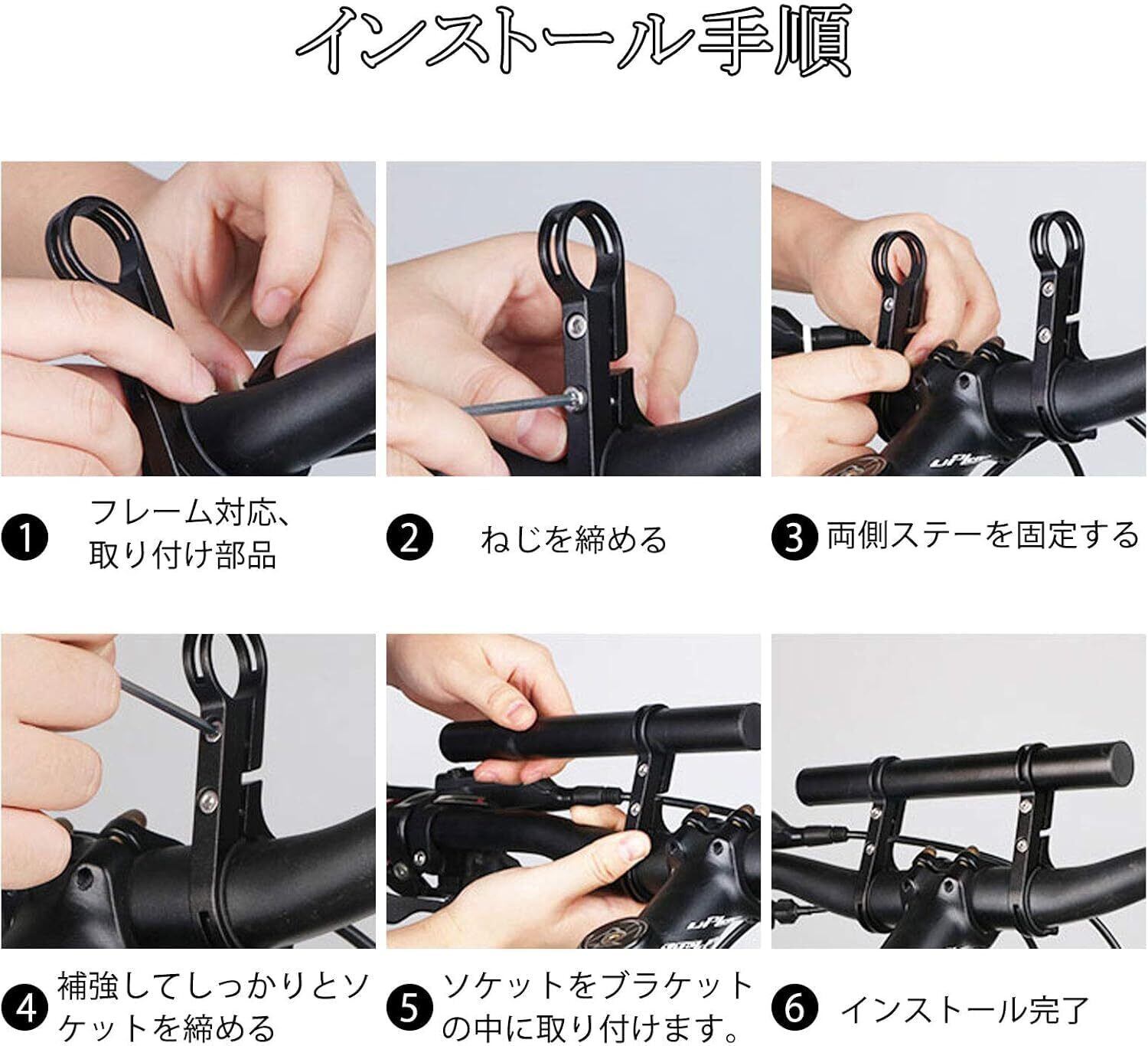 【多機能自転車延長ブラケット】:実用的な自転車延長ブラケットは、自転車に余分なスペースを追加します。ロードバイク、マウンテンバイク、クロスバイクのハンドル周りのパーツの整理などの延長ブラケットです。自転車のライト、スピードメーター、懐中電灯、GPSデバイス、スマートフォンラックなどを固定するために使用されます。