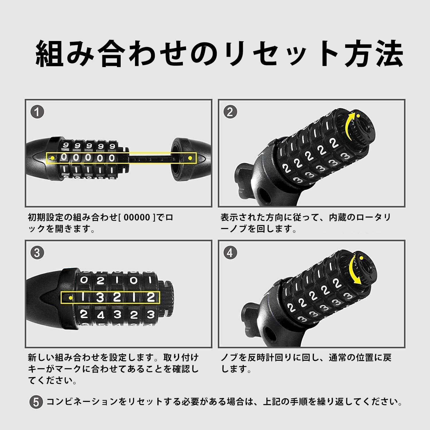 [長さ120センチの自転車用ロック 頑丈で信頼性が高い]自転車鍵ダイヤルの長さは120センチで、市場の伝統的なロックの長さより20センチ長く、多くの使用シーンに適しています。ロードバイク、マウンテンバイクなどの各種の小型交通機関でも、工具箱、グリル、栅、はしごでも……簡単にロックできます。鍵の長さが足りなくなる心配はもう要りません。