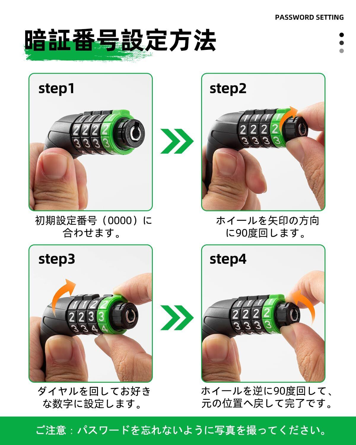 【高品質素材】ロックのシリンダー部分:亜鉛合金製 ロックのケーブル部分:耐切断性に優れたスチール製 自転車鍵は頑丈で壊されにくく、耐久性と防犯性にも優れています。外出時ご愛車をいたずら、盗難からしっかりと守ります。ロックのヘッド部分:高品質なABS素材 変形しにくくて耐衝撃性と耐久性も優れています。