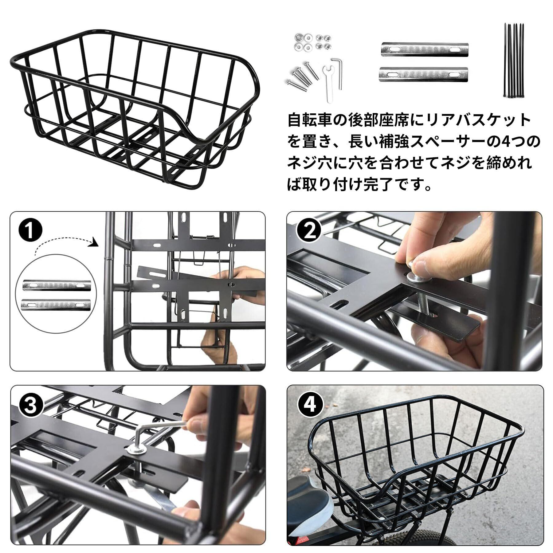 WAIZY 自転車 後ろカゴ 高耐久性 取付簡単 金属製 プラスチックコーティング 防錆性 防水カバーと収納ネットが付属
