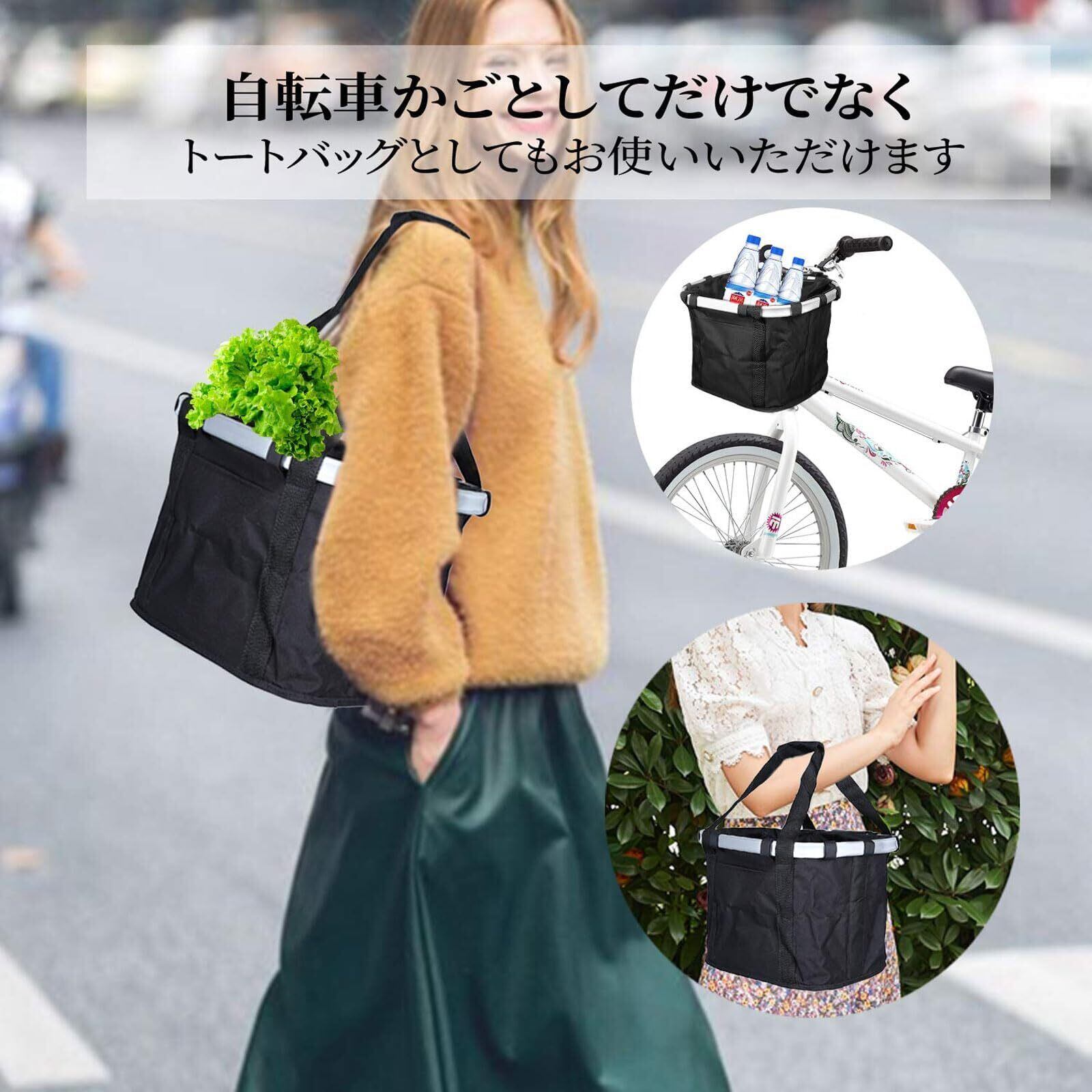 ボタンひとつで取り付け・分解しやすい:自転車のハンドルバーにバスケットを掛けます。 取り付けと取り外しが簡単です。 折り畳み式のデザインは、収納が簡単なだけでなく、スペースを節約します。 自転車かごだけでなく、大容量のトートバッグでもあります。