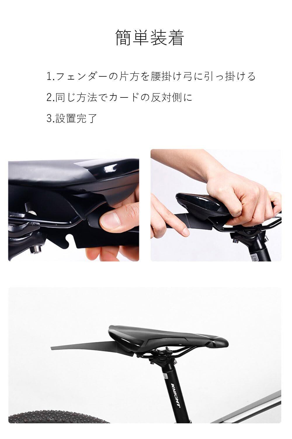 4.簡単装着:取り外しができる、シンプルで巧妙な平面デザインで、使用しない時などはサドル下に折りたたんで収納可能です。