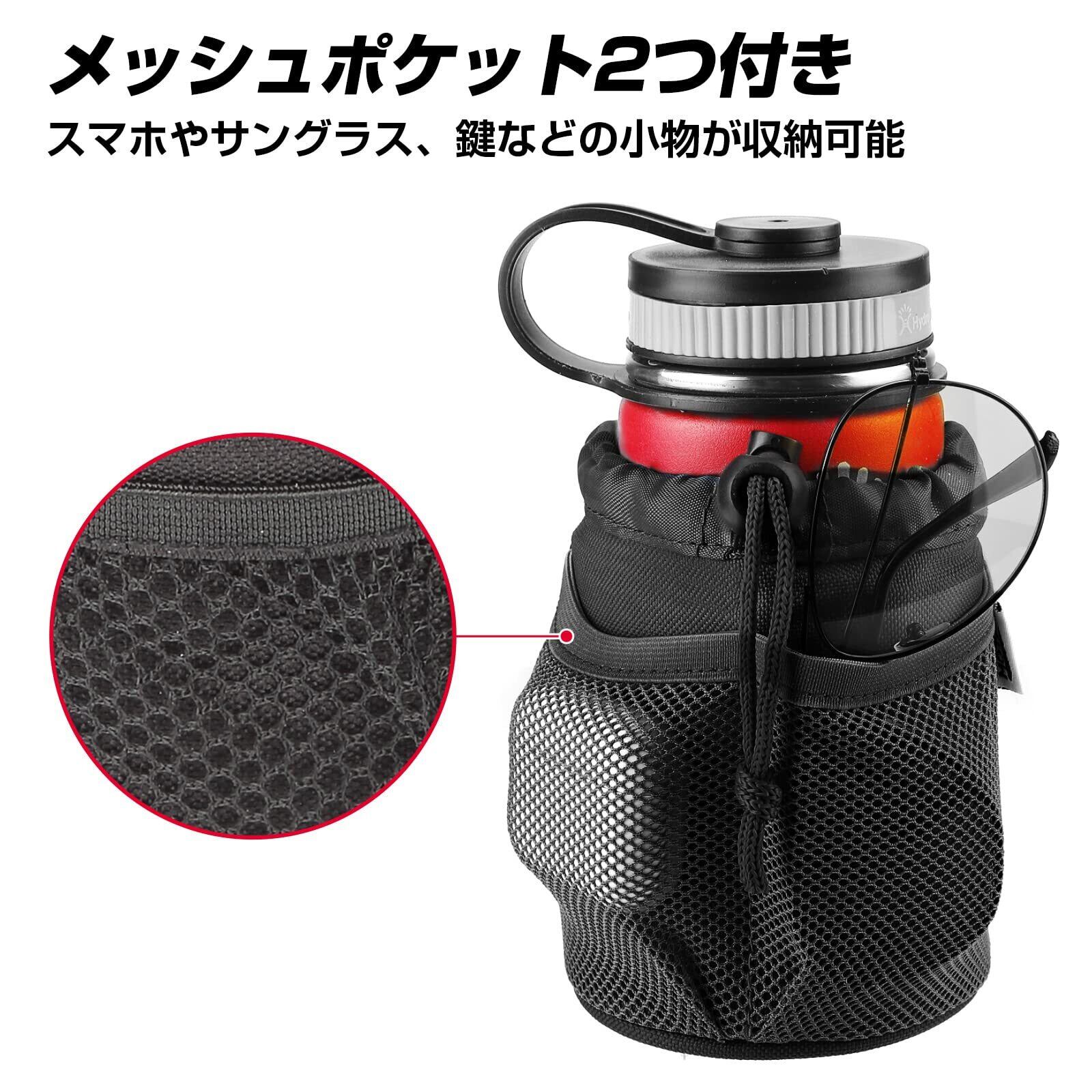 【メッシュポケット付き、収納便利】自転車 ドリンクホルダーの外側にはメッシュポケット2つが付いています。スマホ、イヤホン、充電ケーブル、MP3、キー、サングラスなどの小物収納のため設計されています。常用物の出入りがもっと便利になります。