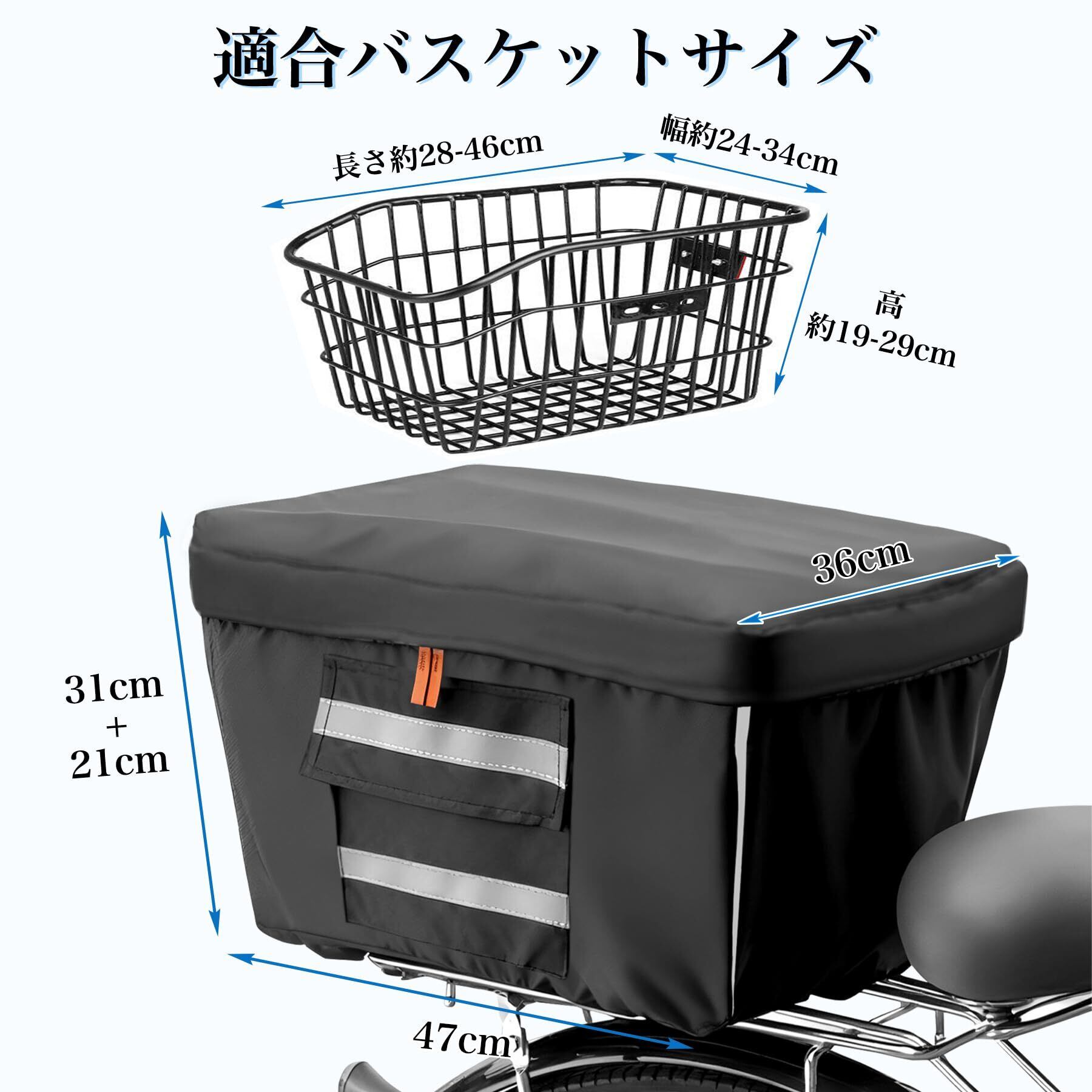 自転車 カゴカバー 後ろ 防水 2段式 (黒, L)