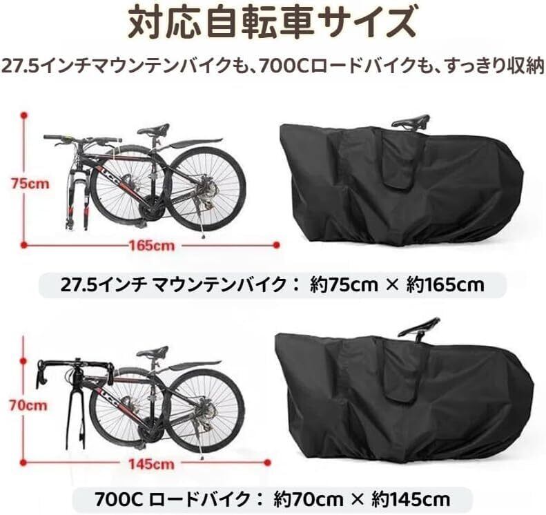 【2025年のNEWスタイル】自転車用輪行袋 420D厚手収納バッグ 27.5インチ マウンテンバイク/MTB/700Cロードバイク対応 輪行バッグ 防水 持ち運び 便利 車載 保管用 自転車収納バッグ付き(168*88cm)