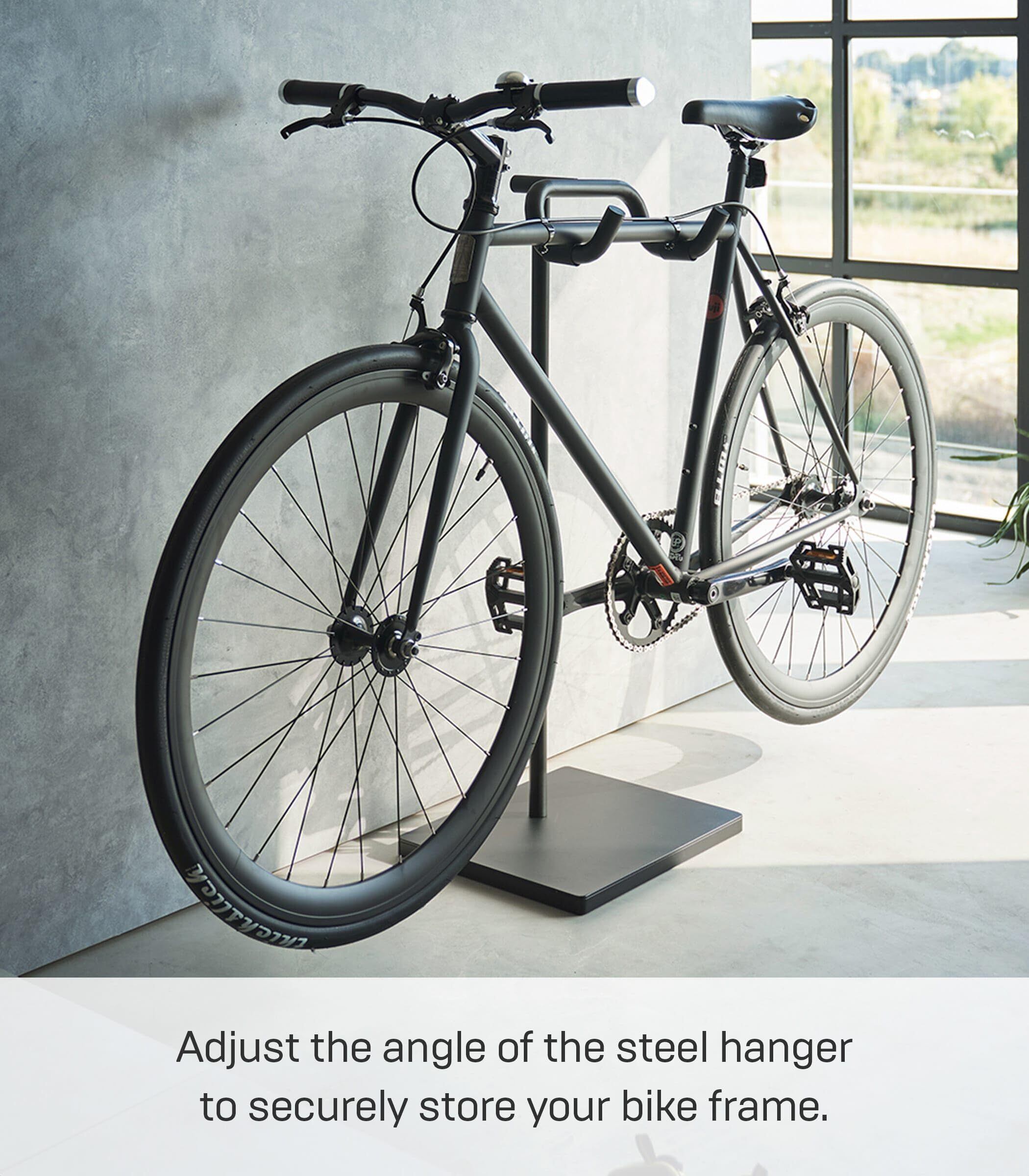 玄関やリビングで、ハンガーに掛けるだけで、お気に入りのスポーツ自転車を省スペースにディスプレイして収納できます。