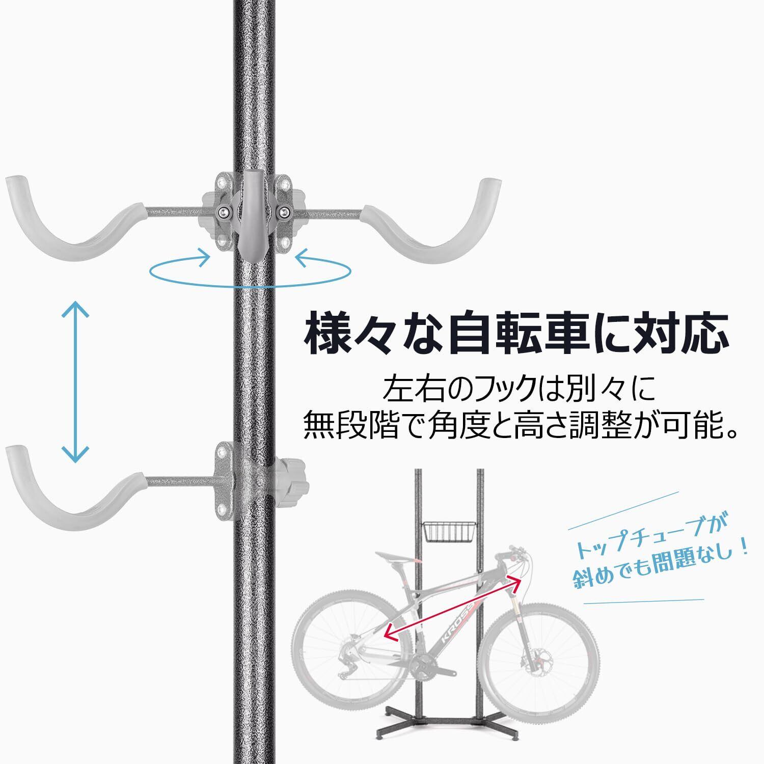 【様々な自転車に対応】 左右のフックは別々に搭載する自転車に合わせて、無段階で自由に角度と高さ調整が可能。