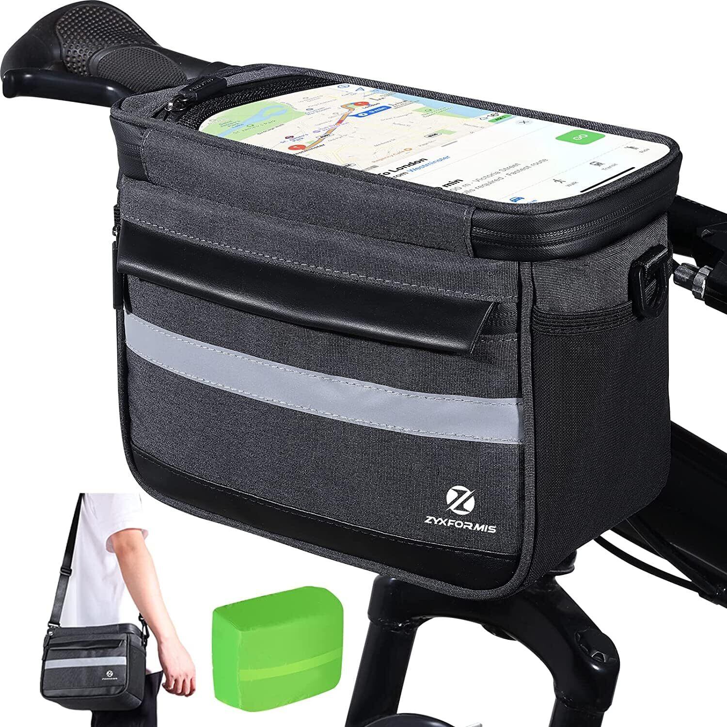 自転車 フロントバッグ 自転車バッグ ハンドルバーバッグ 防水 耐久性 反射 軽量 6L大容量 前カゴ 8.4インチ 高感度TPUタッチスクリーン レインカバー付き ショルダーストラップ付き ロードバイク/クロスバイク