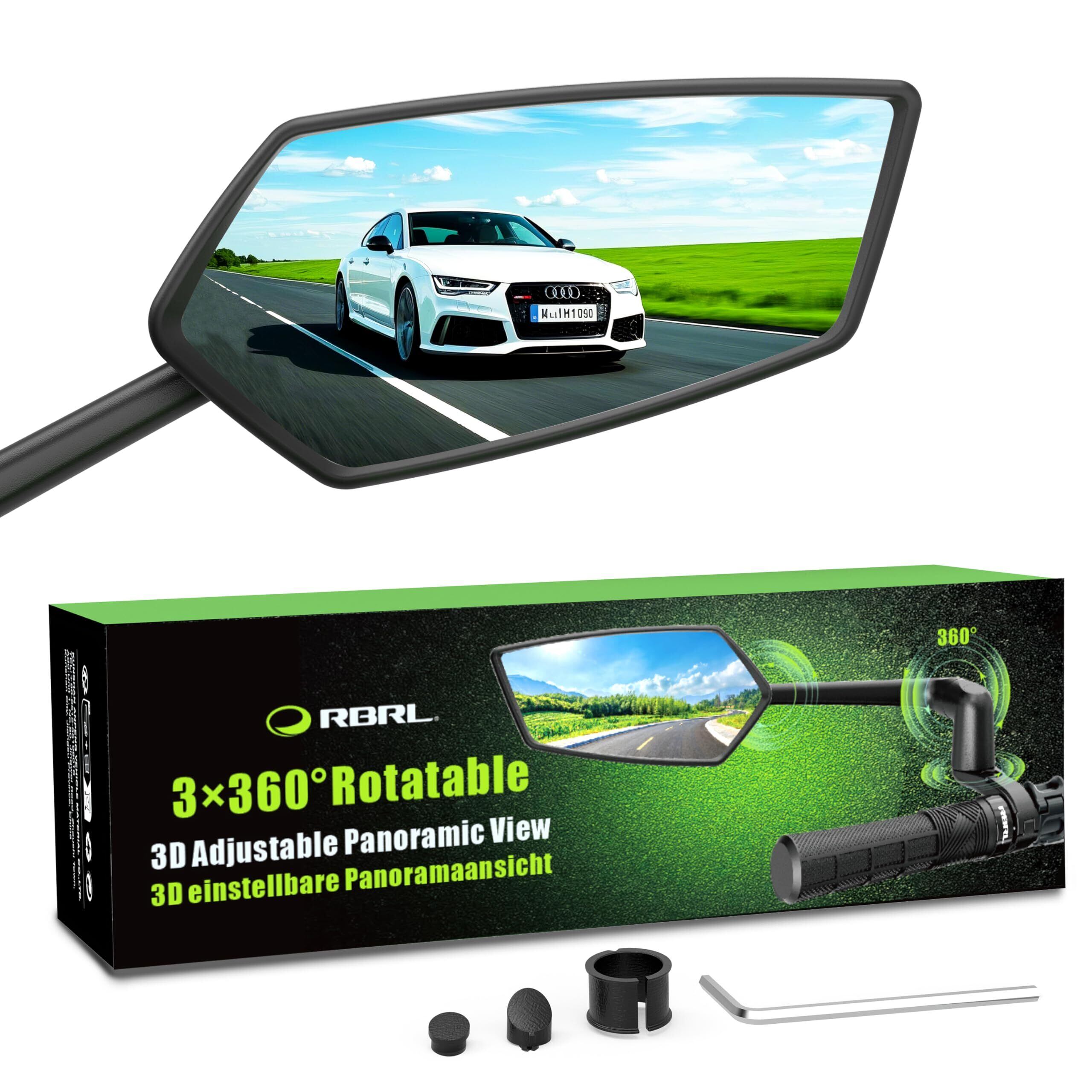 RBRL バイクミラー、360°調整可能な安全リアビュー自転車ミラー、高精細ワイドアングル大型ハンドルリアビューミラー、Eバイク・マウンテンバイク対応(右側)