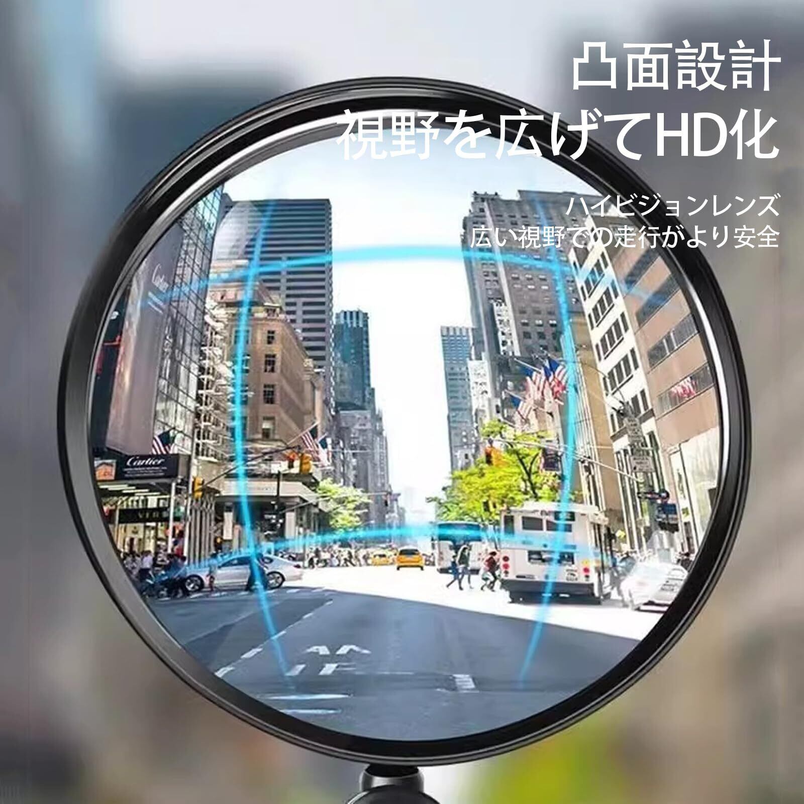 【簡単に着脱が可能】ゴムバンドのみの固定なので、調整可能丸口寸法、自転車バックミラー部分は横に360度、斜め下へ180度の角度調整が可能。