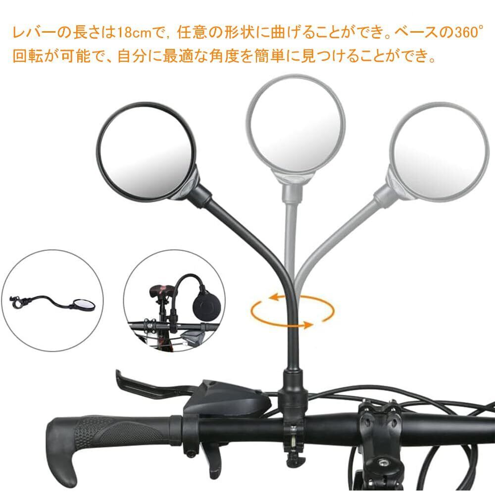 自転車バックミラー 調節でき バックミラー ロングタイプ 360°調整可能 回転可能 左右兼用 丸型 凸面 広視野角 簡単取付 自転車 アクセサリー(1個セット)