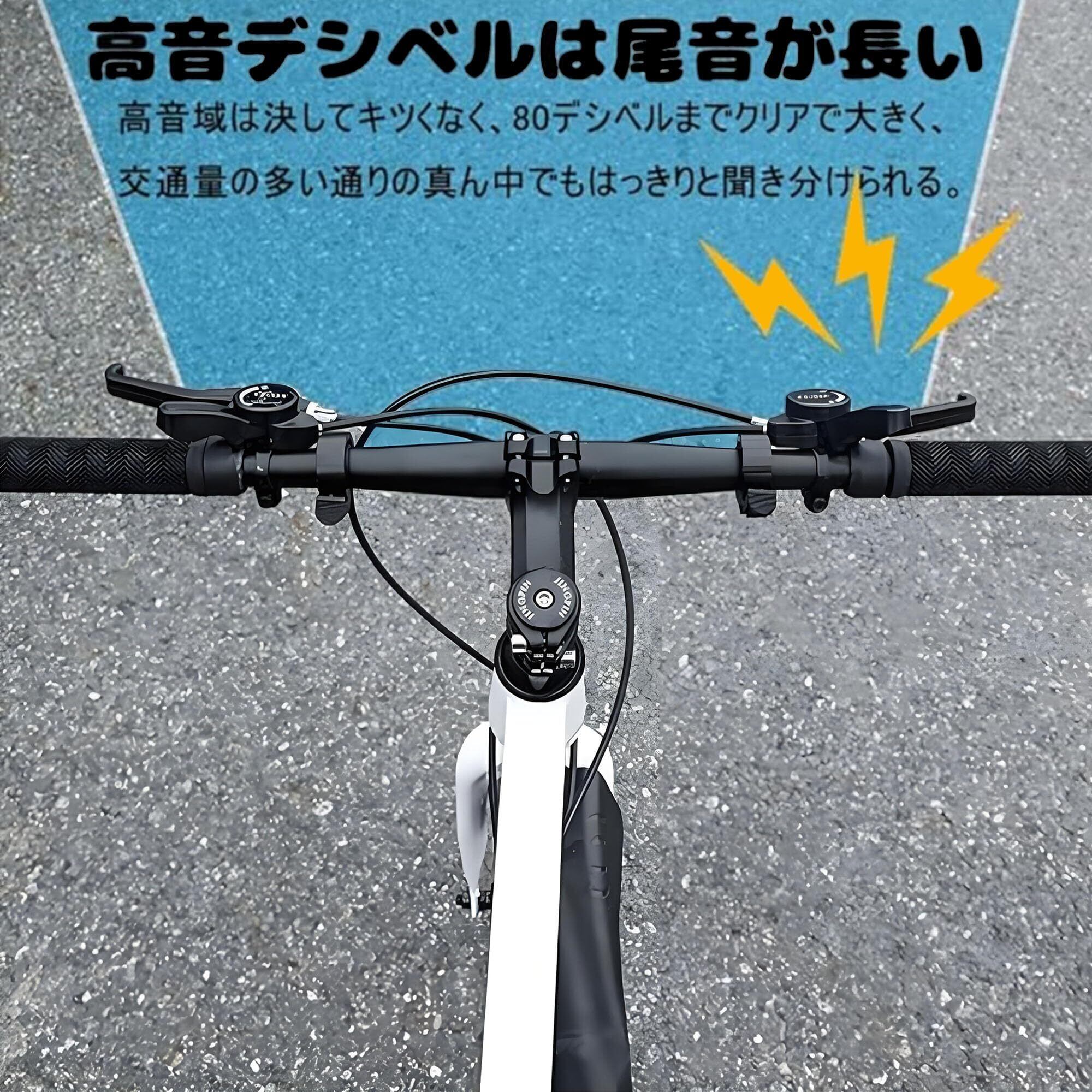 【大音量】このベルは75デシベルの大音量で、クリアで大きな音質です。騒がしい環境でも聞き取りやすく、サイクリストの安全に役立ちます。