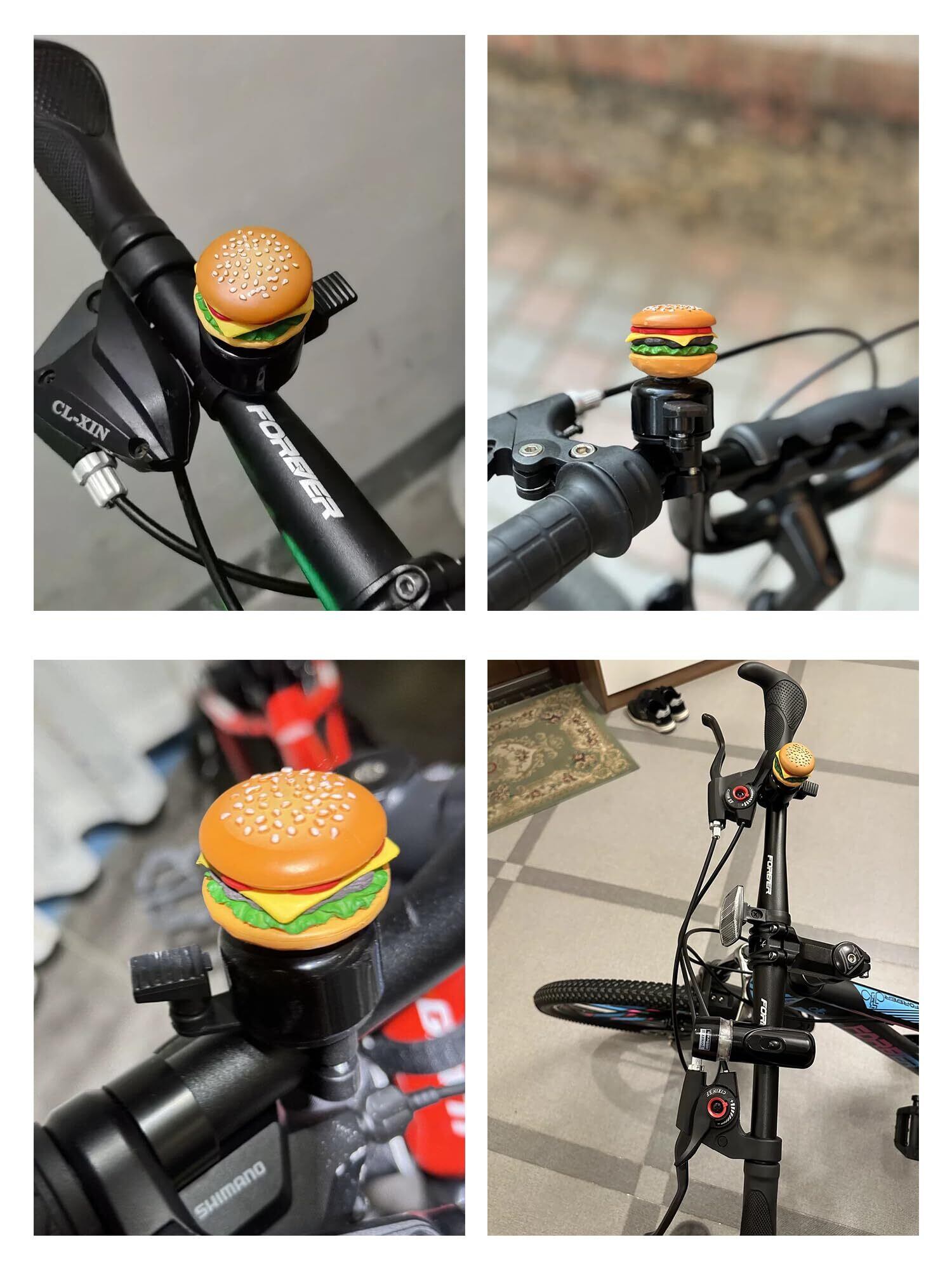 ライディング体験を向上:ユニークなハンバーガーベルは、安全性を確保するだけでなく、自転車に風変わりな魅力を加えます。