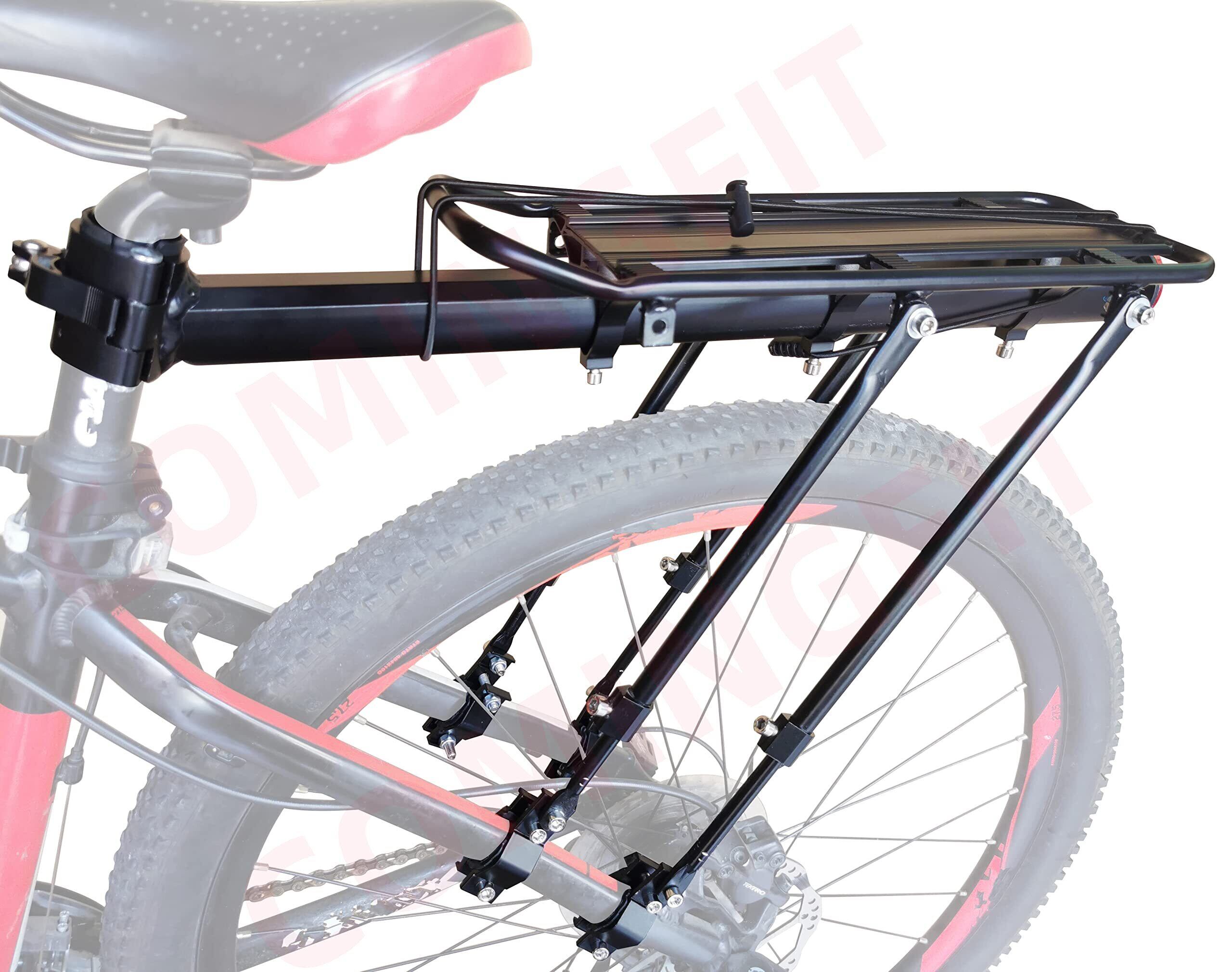 COMINGFIT® 調節可能な自転車荷物貨物ラック、超強力なアップグレード自転車荷物キャリア、75kgの重さをサポートするための4つの強力なサポートバー