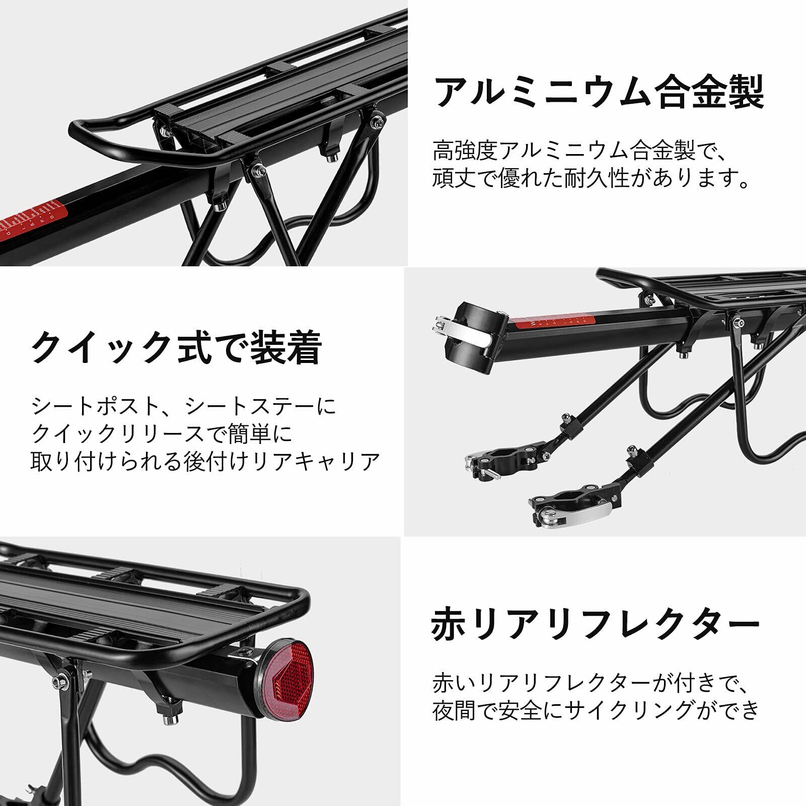 ROCKBROS(ロックブロス) 自転車 荷台 リアキャリア 耐荷重25KG アルミ製 荷物置き台 軽量 伸縮自在 簡単取付け 反射板付き 耐久性 後付け ツーリングリアキャリア マウンテンバイク ロードバイク