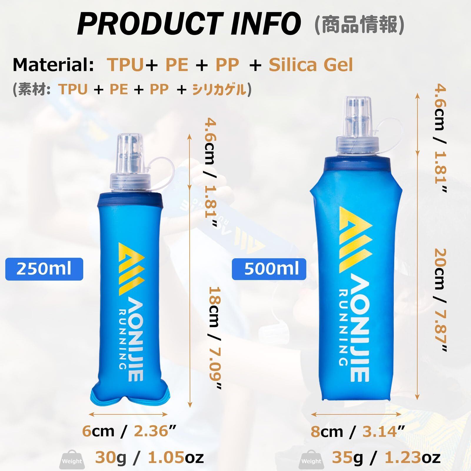 Azarxis ハイドレーション ソフトフラスク ボトル 水筒 折りたたみ ランニング 防塵キャップ付き TPU ウォーターボトル 軽量 給水 マラソン 登山 サイクリング アウトドア 250ml 500ml