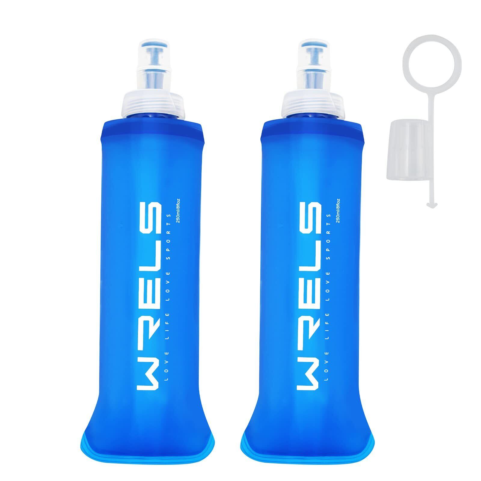 ソフトフラスク ハイドレーション ランニング ボトル 水筒 150ml/250ml/500ml 折りたたみ 防塵キャップ付き 軽量 トララン マラソン ハイキング 登山(青,250ml*2)