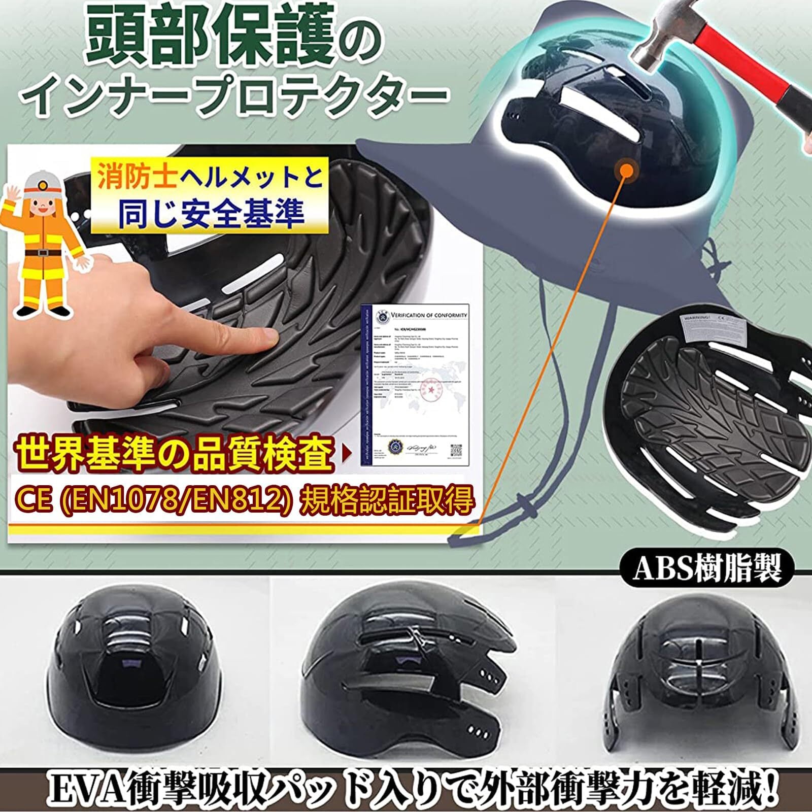 【CE安全基準】普通のハットに見えるけれども、基本的なヘルメットの保護機能を備えています。内部には高強度の緩衝材が使用され、転倒や衝突の際に効果的に頭部を保護します。ヨーロッパの厳しい安全基準であるCEマーク(EN812、EN1078)を取得しました。 消防士ヘルメットと同じ安全基準を取得。1.5tの衝撃を耐える基準値に達しています。保護インナー取り外し可能となっているので、自転車ヘルメットや防災用品などとしても。取り外しできるインナープロテクターは頭の損傷や擦り傷等を防ぎます。