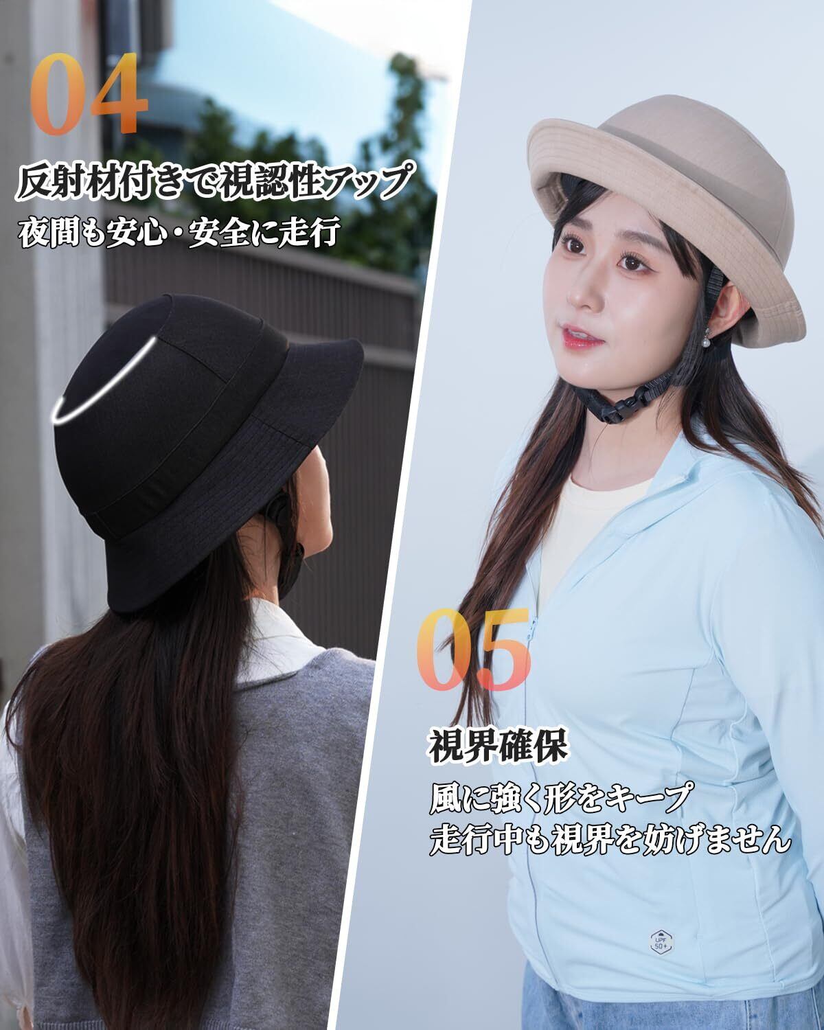 自転車 ヘルメット 大人用 レディース 女性 帽子型 おしゃれ アウトドアハット SG基準 軽量 反射材付き サイズ調整可能 54〜57cm