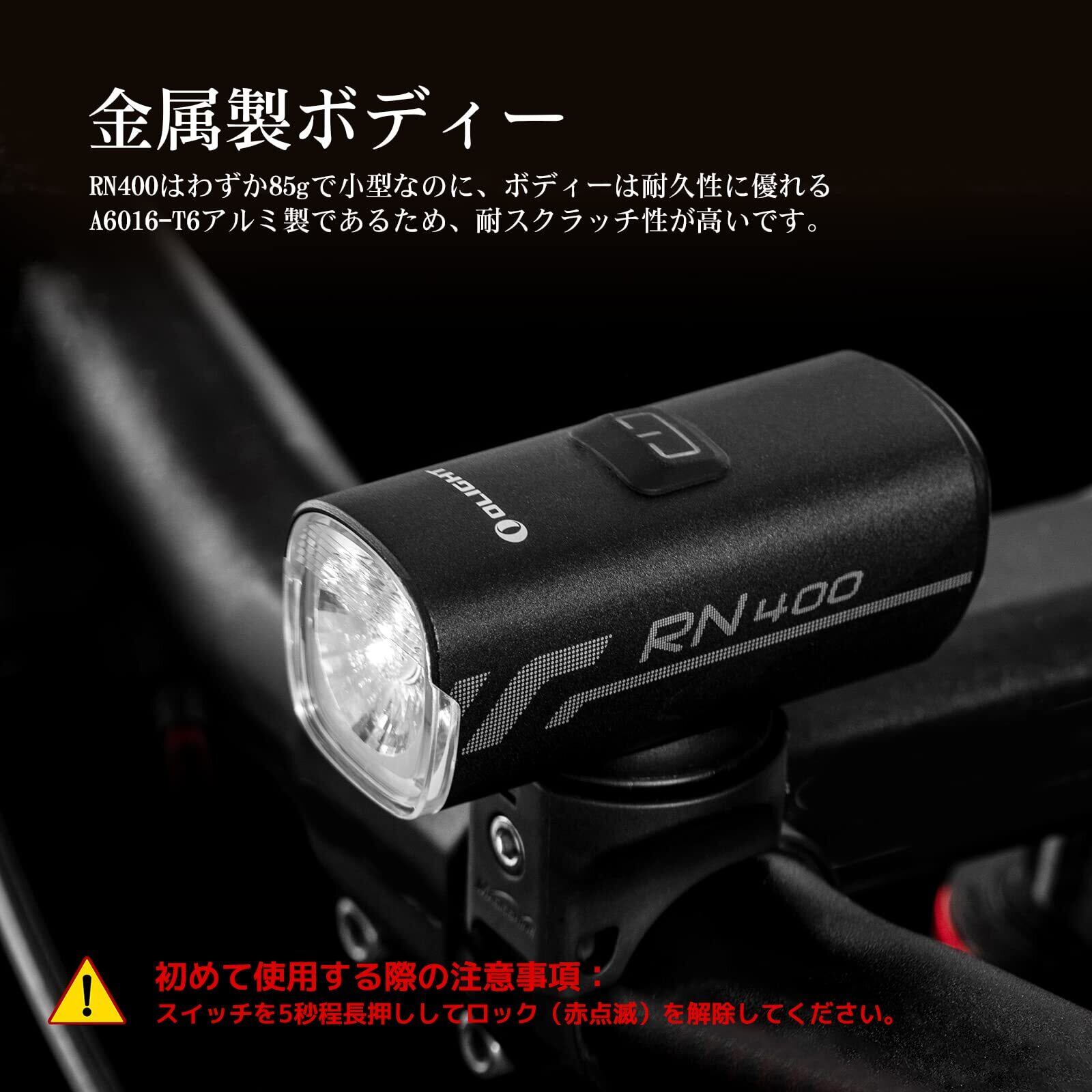 OLIGHT(オーライト) RN400 自転車 ロードバイクライト ヘッドライト 400ルーメン フロント USB充電式 長時間持つ IPX7防水 通勤 通学 サイクル用 防災 夜間走行 5秒程長押しロック解除