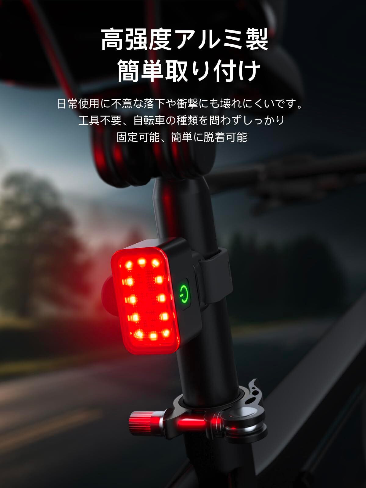 自転車 テールライト スマートブレーキ警告 USB充電式 72時間持続点灯 IPX5防水 防振 軽量 昼夜 通用 ハイキング サイクリング 通勤 通学 簡易装着 日本語説明書付き