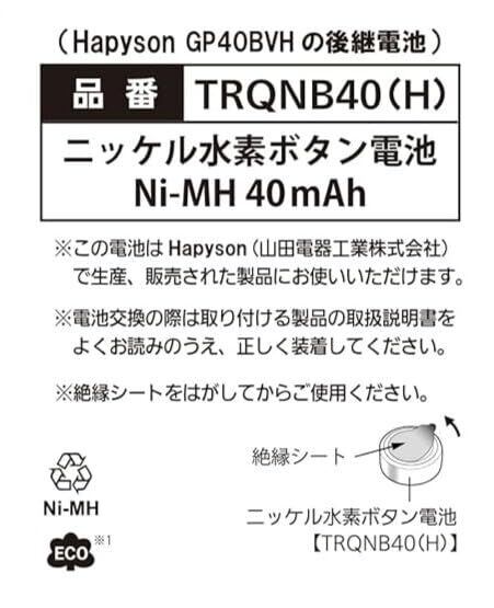 ハピソン(Hapyson) ソーラーテール補修用充電電池 GP40BVH後継品 TRQNB40(H) 1個