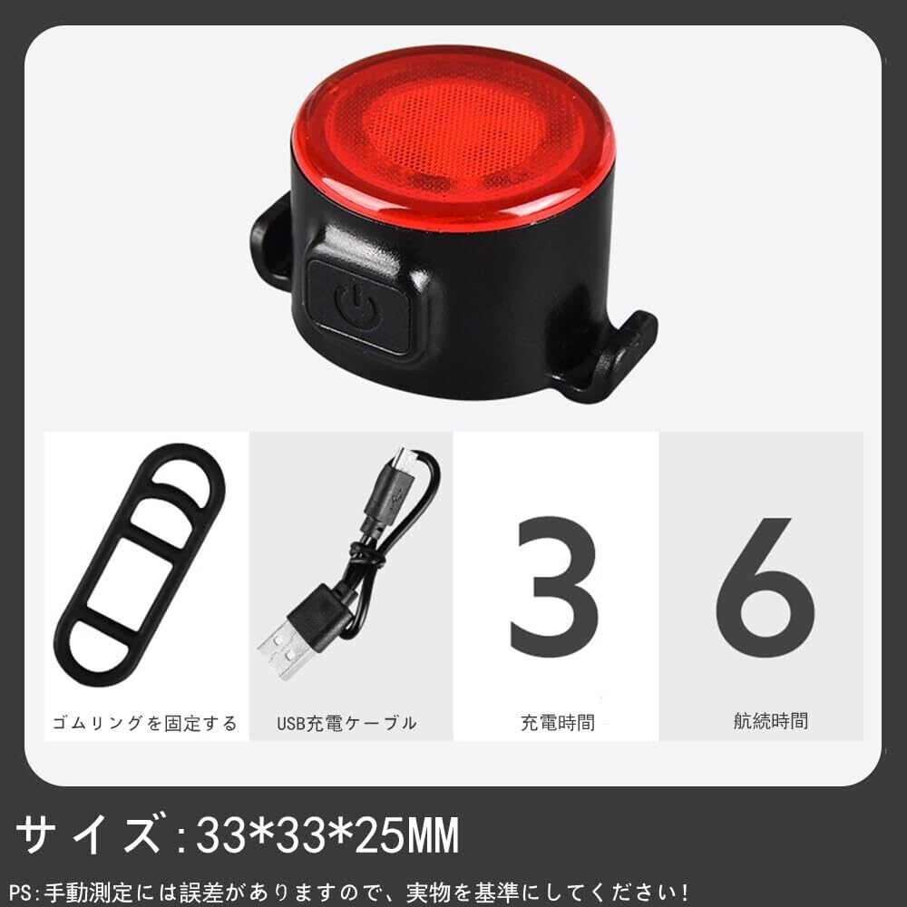 テールライト 自転車 リアライト 高輝度 IPX6 防水 取付簡単 6つの照明モード USB充電式 サイクルライト ロードバイク バック セーフティ 夜間走行 警告灯