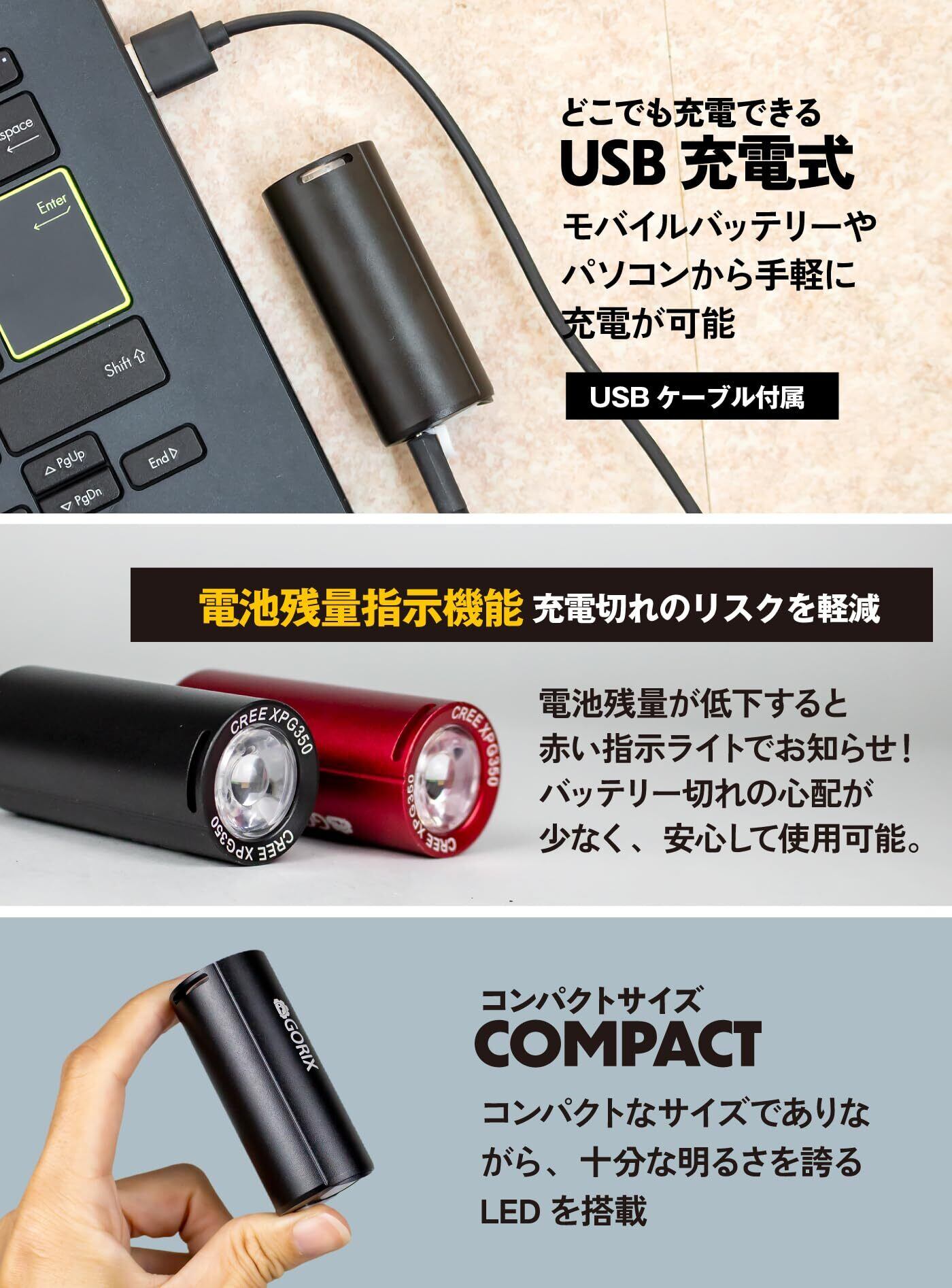 GORIX(ゴリックス) ヘッドライト 自転車ライト usb充電 防水 LEDライト明るい (GX-FL1579) 盗難防止 サイクルライト 工具不要 フロントライト