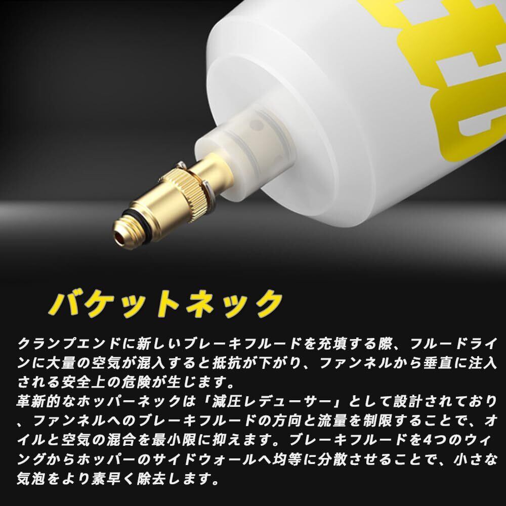 1. 新型接続方式と免堵塞降圧漏斗:最新の技術を採用したブリードキットは、免堵塞降圧漏斗と新型接続方式で、使用時の油路を自動で開閉し、溢れを防ぎます。嵌入式の金属斗頸で耐久性が大幅に向上。