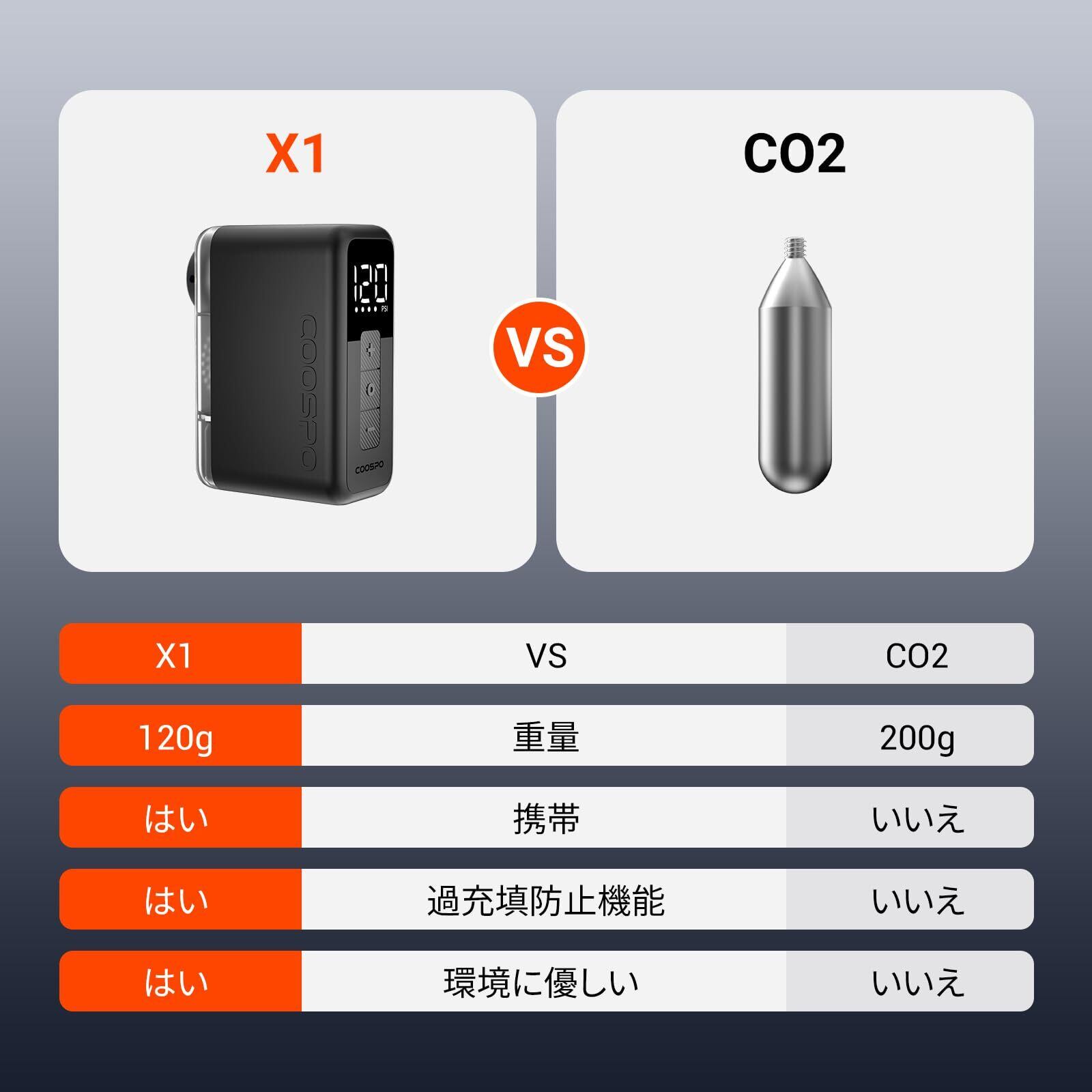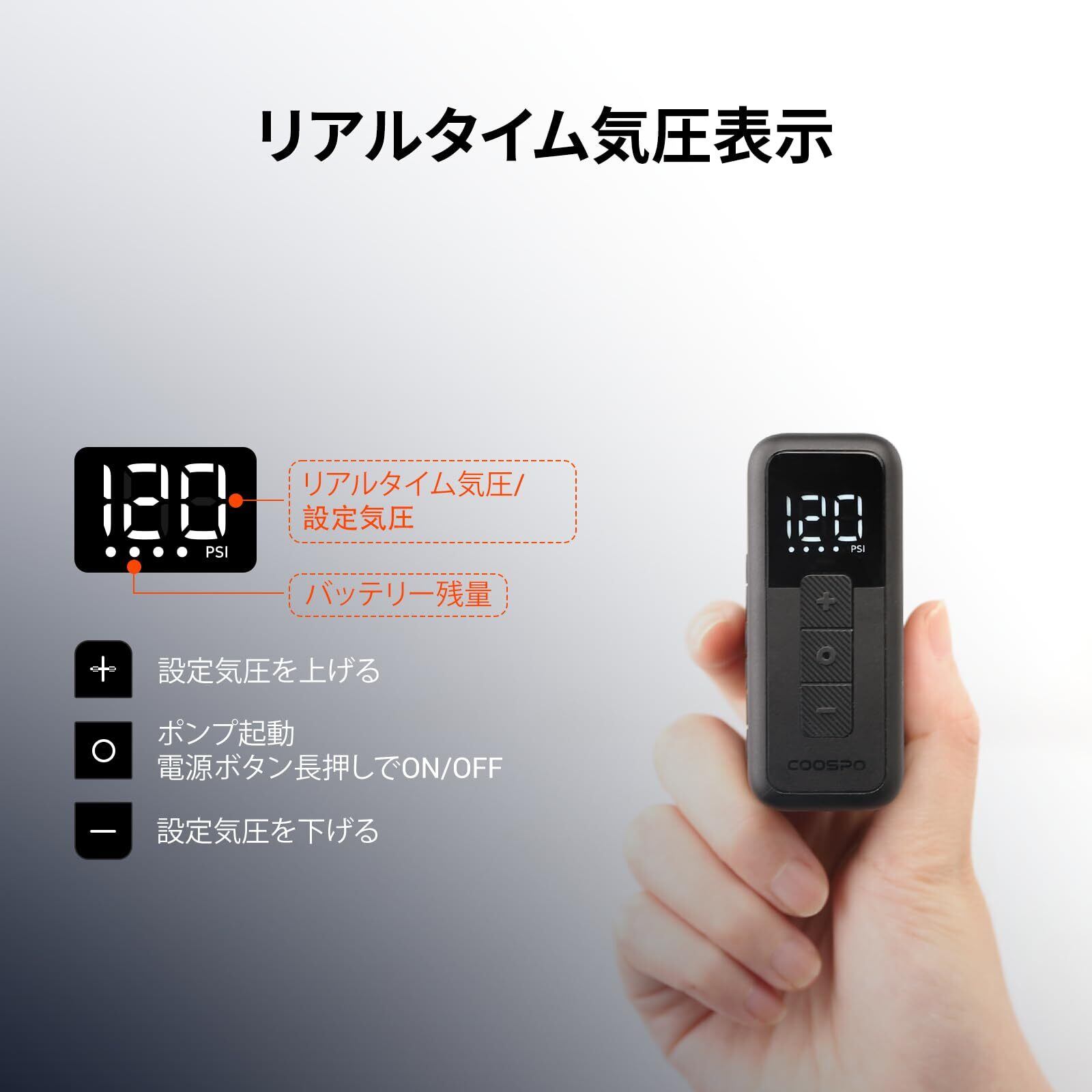 COOSPO X1 自転車 空気入れ 電動 120PSI ロードバイク 電動ポンプ 携帯 気圧表示 米式/英式/仏式 全バルブ対応 超小型 軽量 エアコンプレッサー 日本語説明書