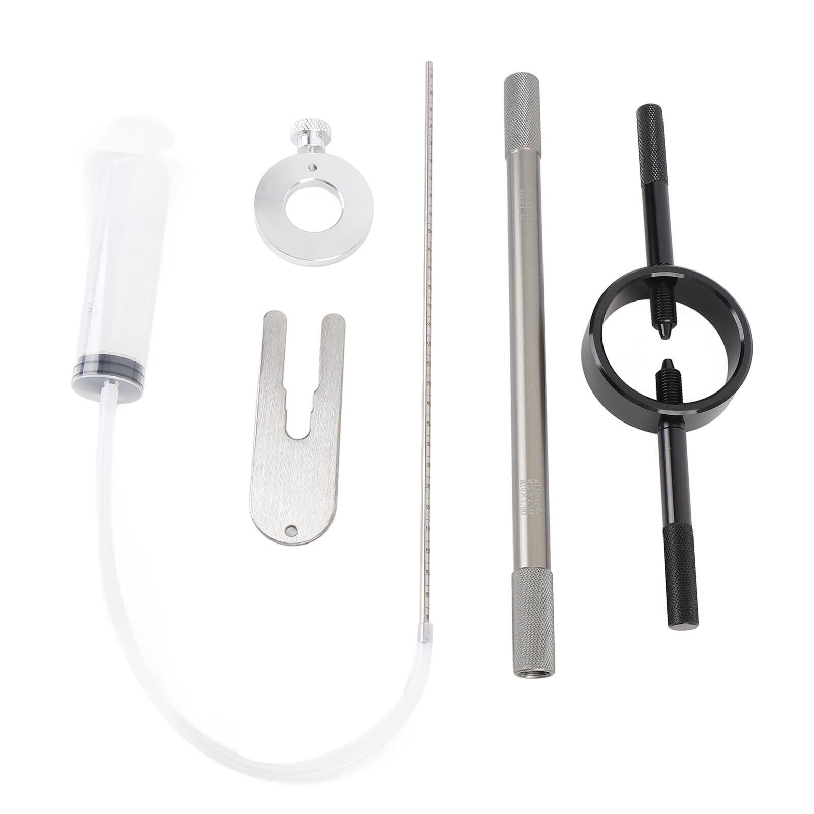 精密オイルレベル測定:高精度オイルレベルゲージを搭載したこのツールは、フォークオイルを正確に充填できます。調整リングは0~300mmの範囲を0.5cm単位で測定でき、最適なオイルレベルを簡単に確保できます。