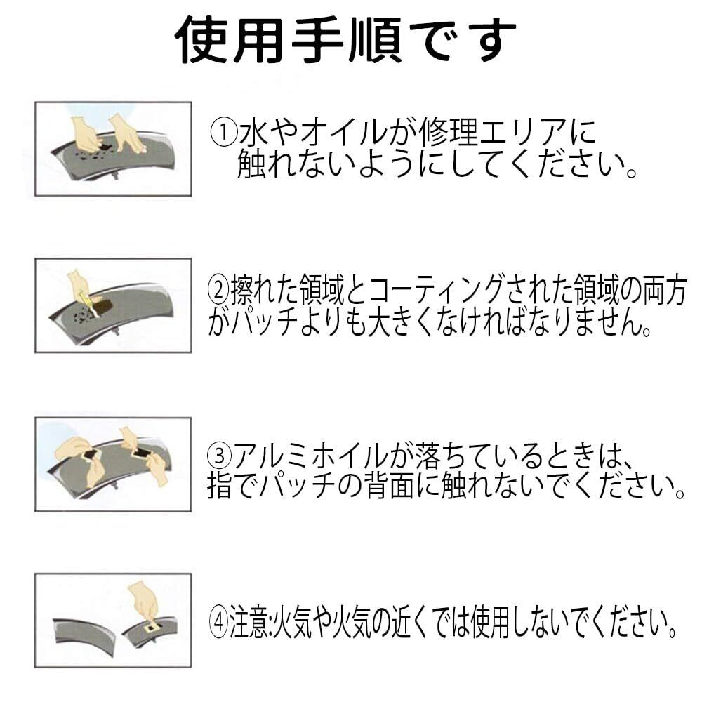 【注意】タイヤパッチに粘着性はありません。パッケージ内に接着剤は含まれていません。紙全体の保護膜を完全に剝がしてはいけません。