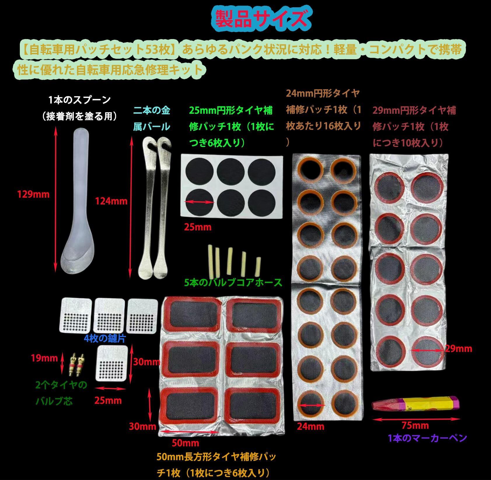自転車用パンク修理キット53枚セット - 軽量コンパクトで通勤・旅行に最適 金属タイヤレバーと多様 パッチ緊急修理ツール パンク修理キット 自転車 パンク修理キット バイク 自転車 パッチセット緊急用タイヤ修理補修タイヤ修理キットタイヤパッチ