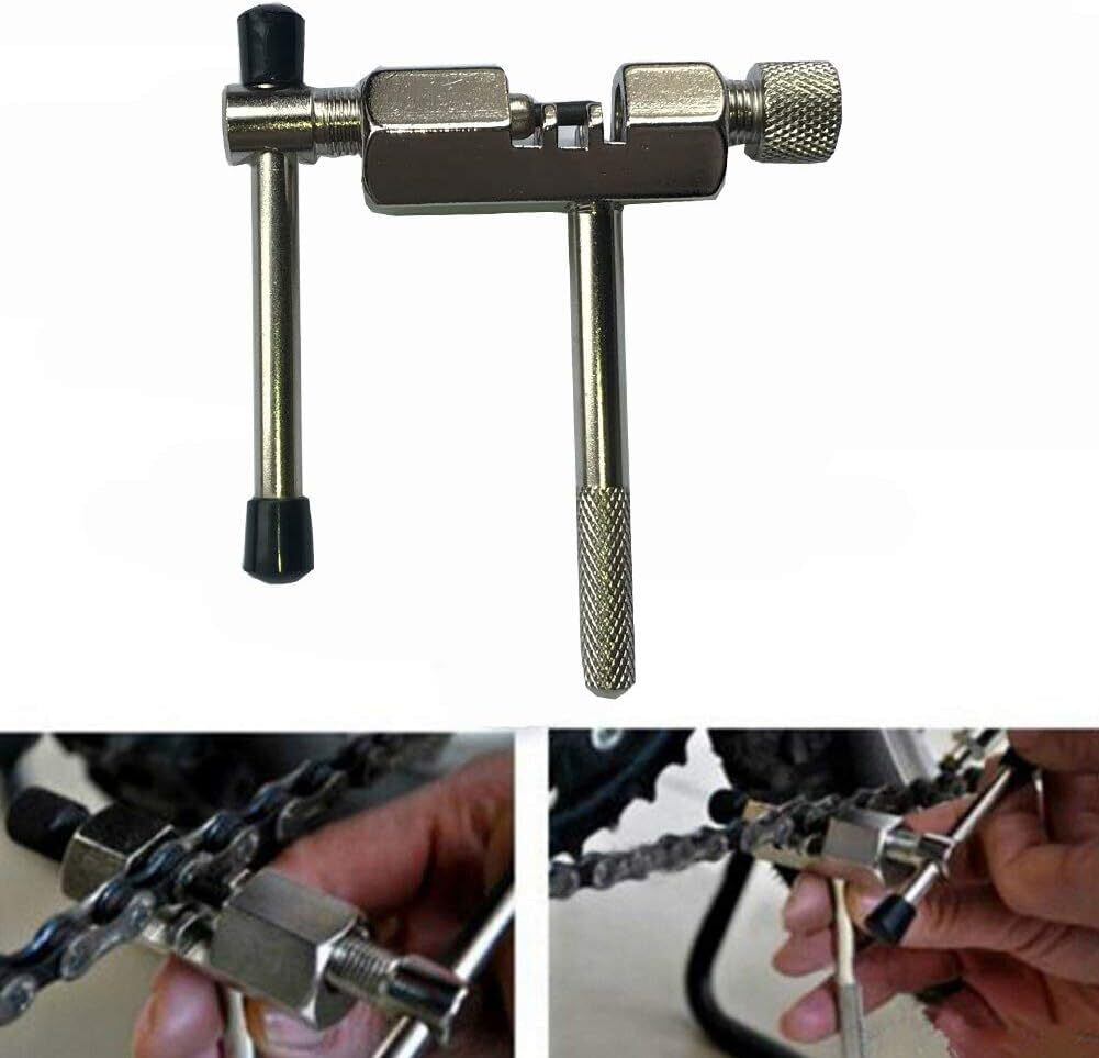 【自転車チェーンカッター】材質:炭素鋼 カラー:銀色+黒 軽量で、持ち運びに便利なチェーンカッターです。以下に合います:8/9/10のスピードの一般的な自転車チェーンは、すべての一般的な自転車チェーンのために働きます。このチェーンカッターを使用すると、取り付けと取り外しが非常に簡単に行えます。チェーンピンを素早く正確に取り外すように特別に設計されています。(76mm*81mm*65mm 133.3g)