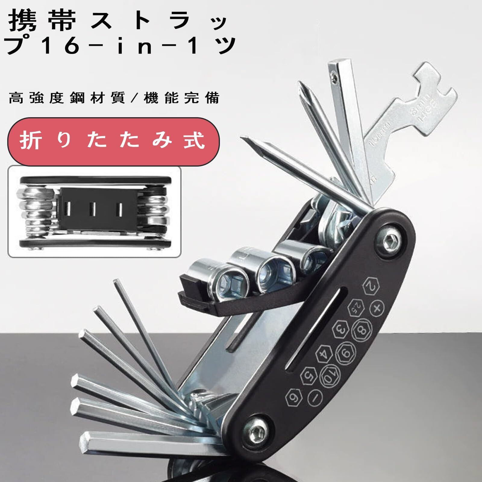 自転車工具セットポータブル多機能高硬度六角レンチセット折りたたみ可能持ち運び便利16 in 1多機能自転車工具ロードバイク対応ポータブル工具セット*1