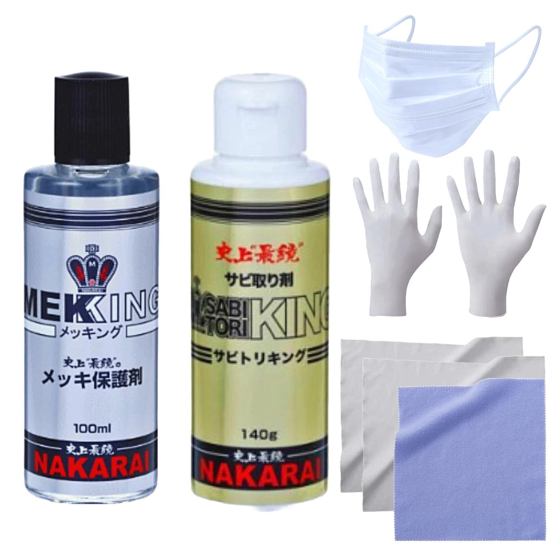 NAKARAI メッキング サビトリキング +各専用クロス+作業用手袋マスク付 doremiショップオリジナルセット MEKKING セット ナカライ 鏡面 磨き 傷消し 車 バイク