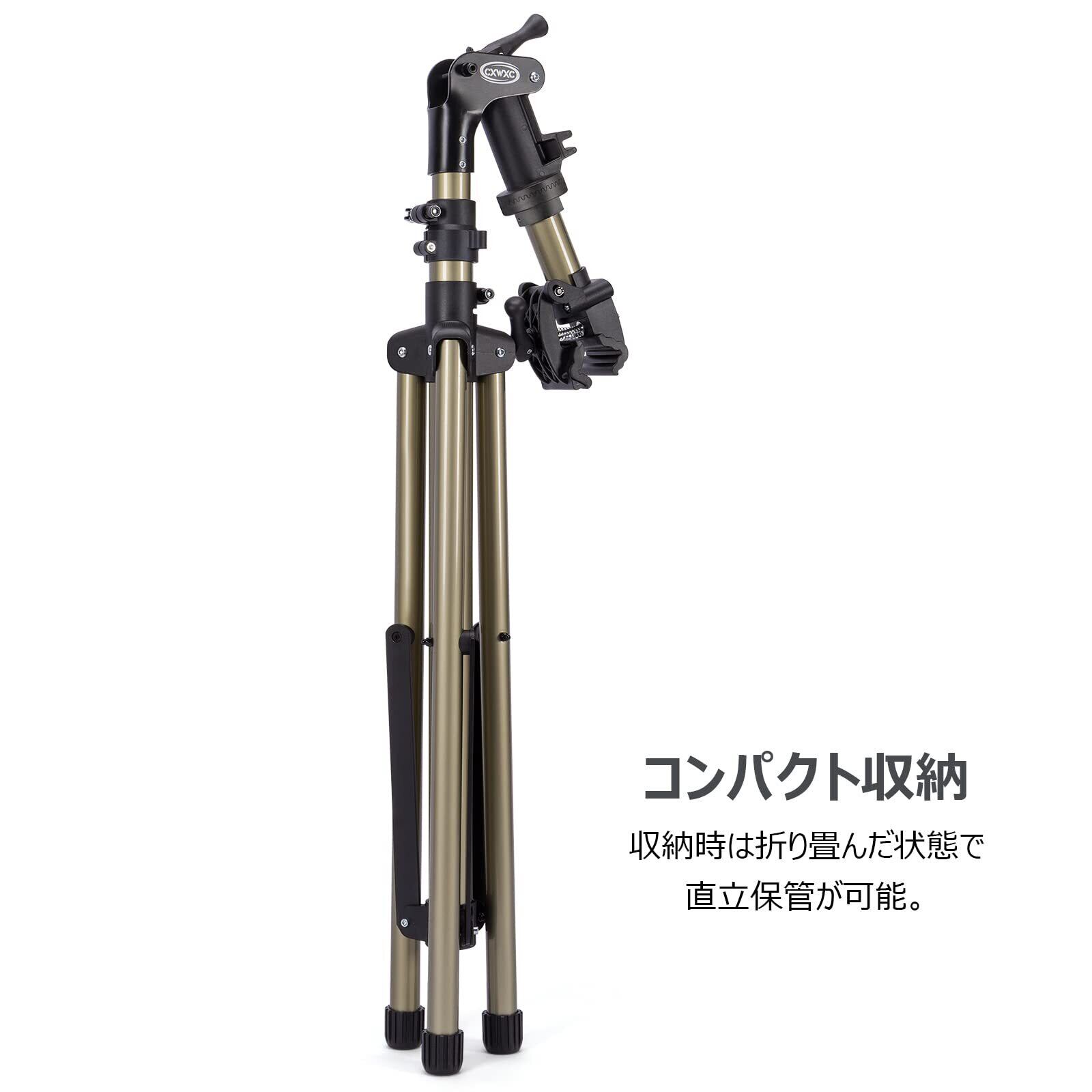 CXWXC 自転車 メンテナンススタンド 三脚 角度・高さ調整 耐荷重30kg ワークスタンド アルミ製 折りたたみ ロードバイク 洗車及び整備 スタンド ママチャリ、クロスバイクなど用 作業スタンド 工具トレー/ハンドル支えバー付き(TQXL-21-A)
