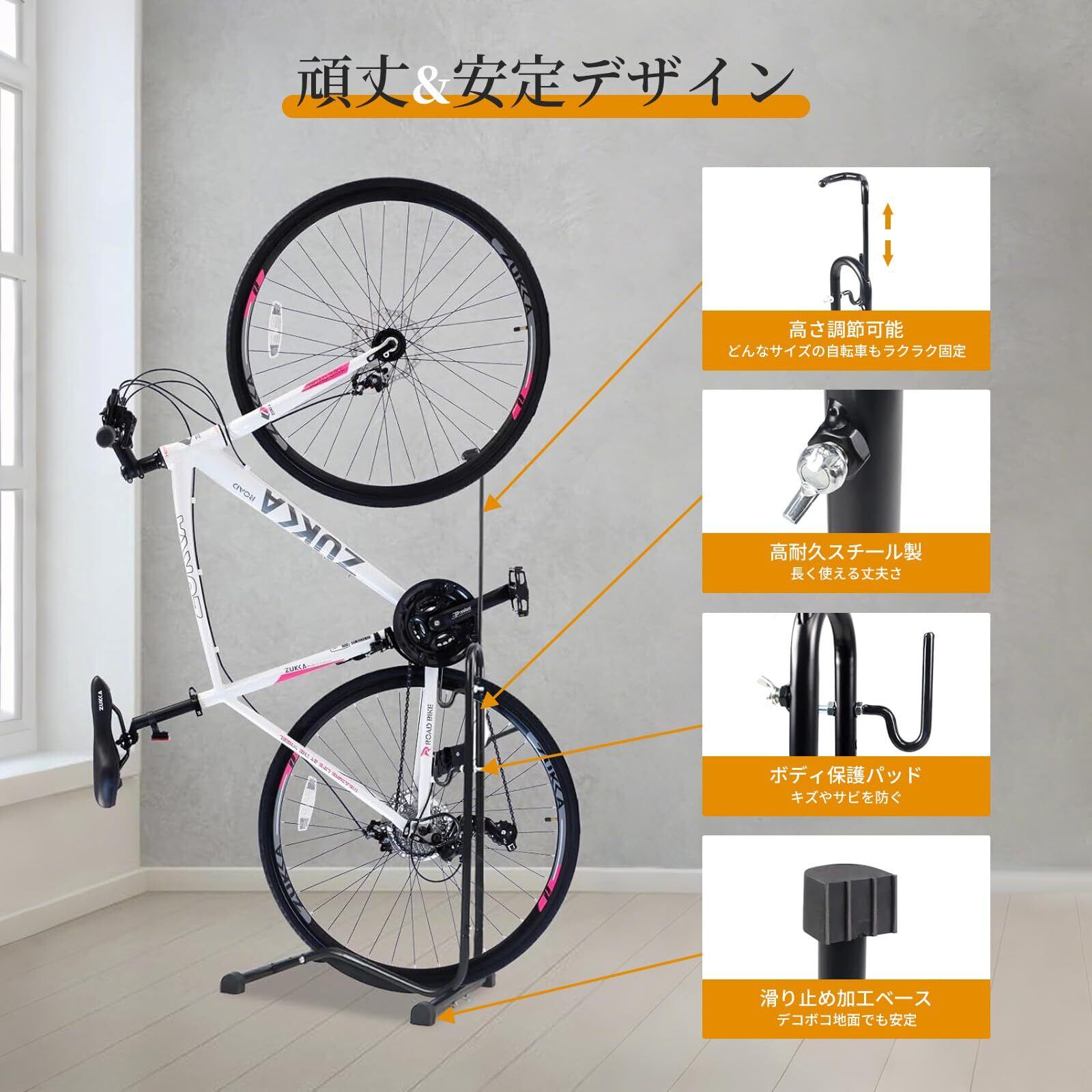 【高安定&安全設計の頑丈スチールフレーム】高品質な鉄製フレームと四点荷重設計により、抜群の安定性と安全性を実現しています。調整可能なU字フックには保護ラバーが付いており、大切な自転車を傷から守ります。さらに、工具不要で簡単に分解でき、収納や持ち運びも便利です。
