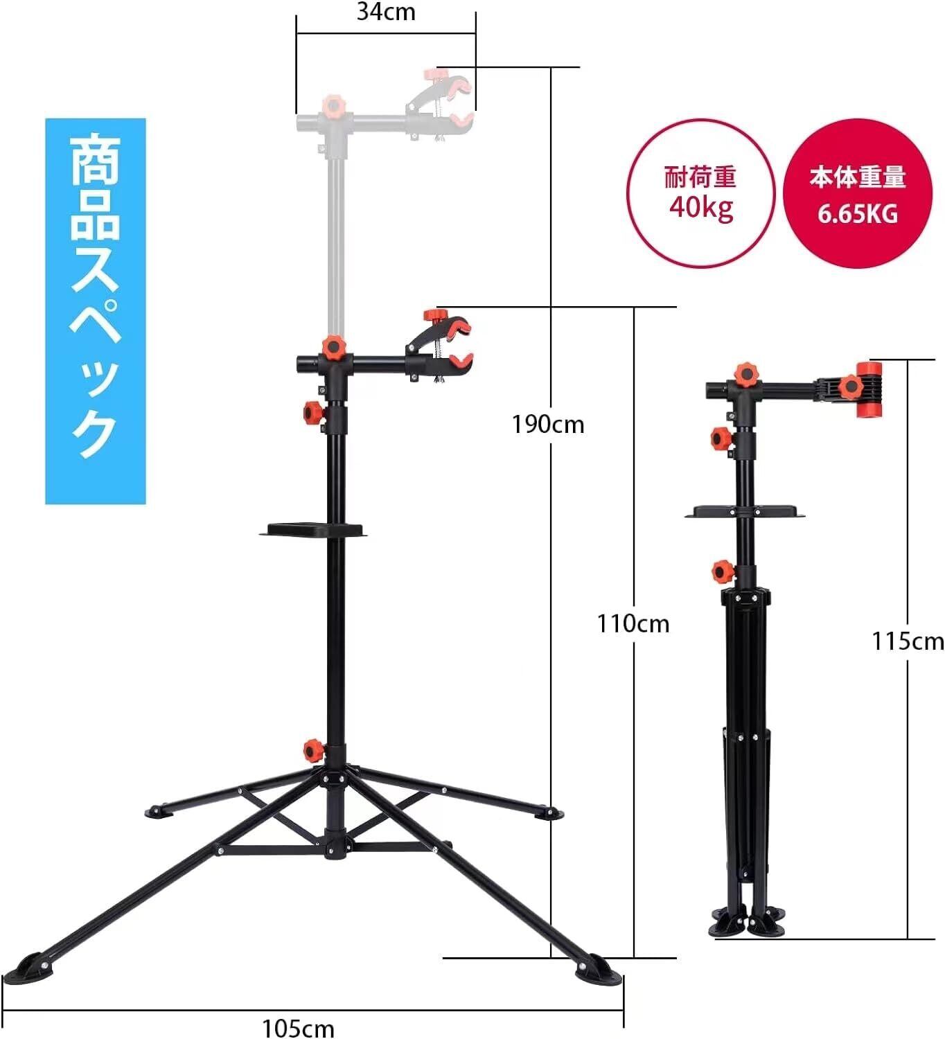 自転車 メンテナンススタンド ワークスタンド 整備スタンド 高さ・角度無段階調節可 耐荷重40KG 折りたたみ 自転車 ロードバイク スタンド メンテナンス メンテナンススタンド コンパクト ディスプレイスタンド 4本足で倒れない 頑丈