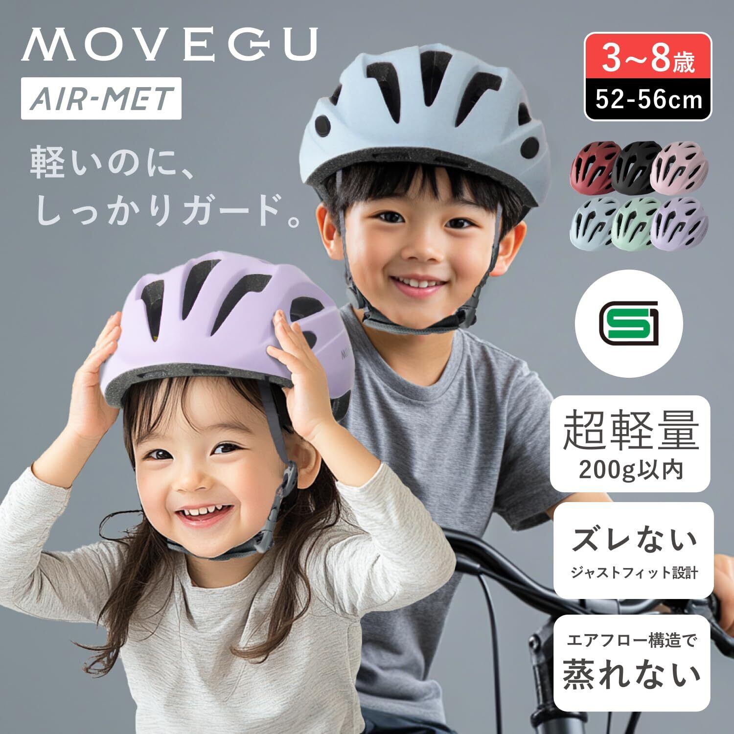 MOVEGU【SG規格x超軽量x3~8歳】ヘルメット 子供 自転車 【通気性エアフロー構造x衝撃吸収】全方位保護クッション 自転車用ヘルメットAIR-MET