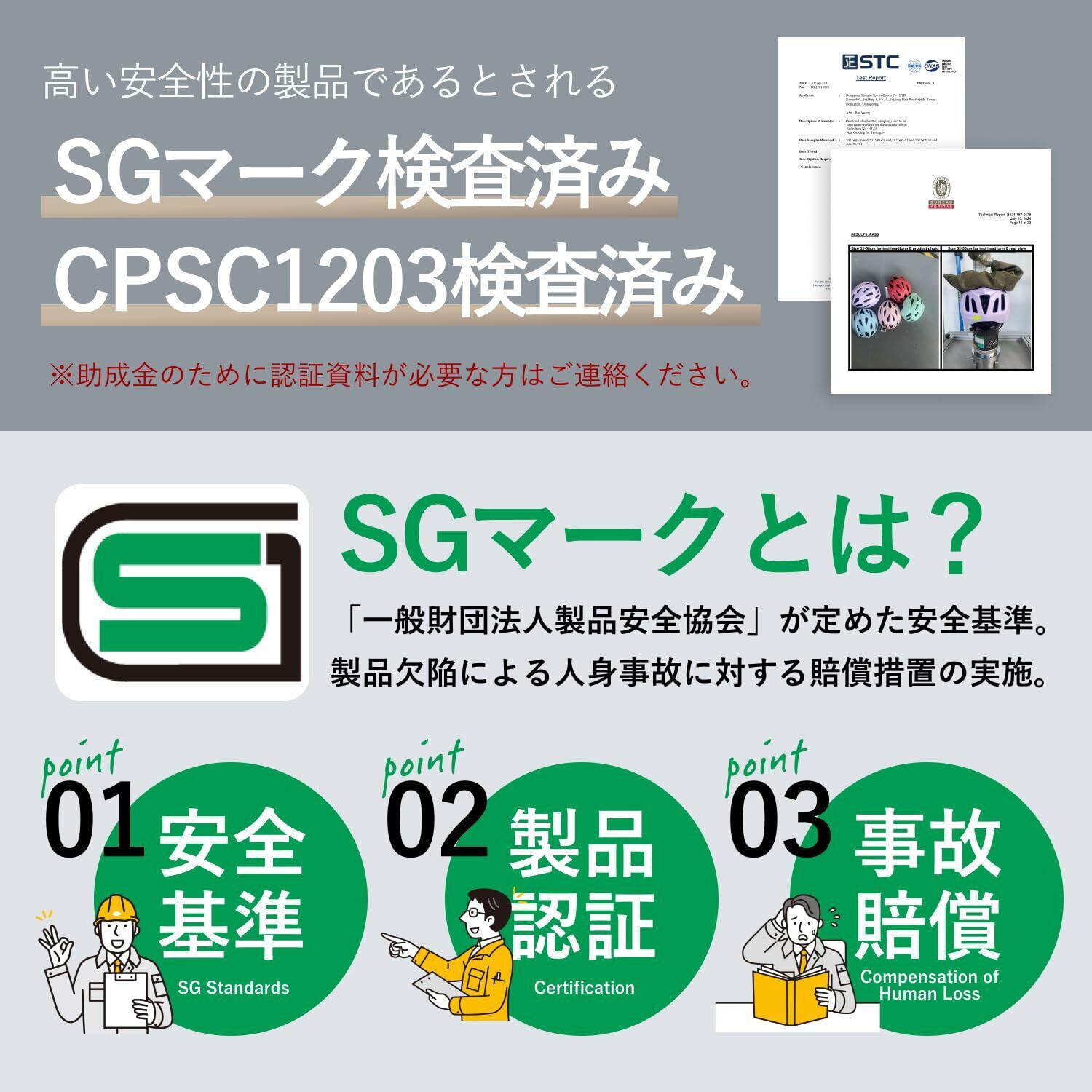【日本向け子供用ヘルメット】当社のヘルメット は、日本国内の子供に特化した製品で日本人の子供の頭部形状に合わせて設計。 CPSC1203マーク・CEマークEN1078・SGマーク認証を取得。