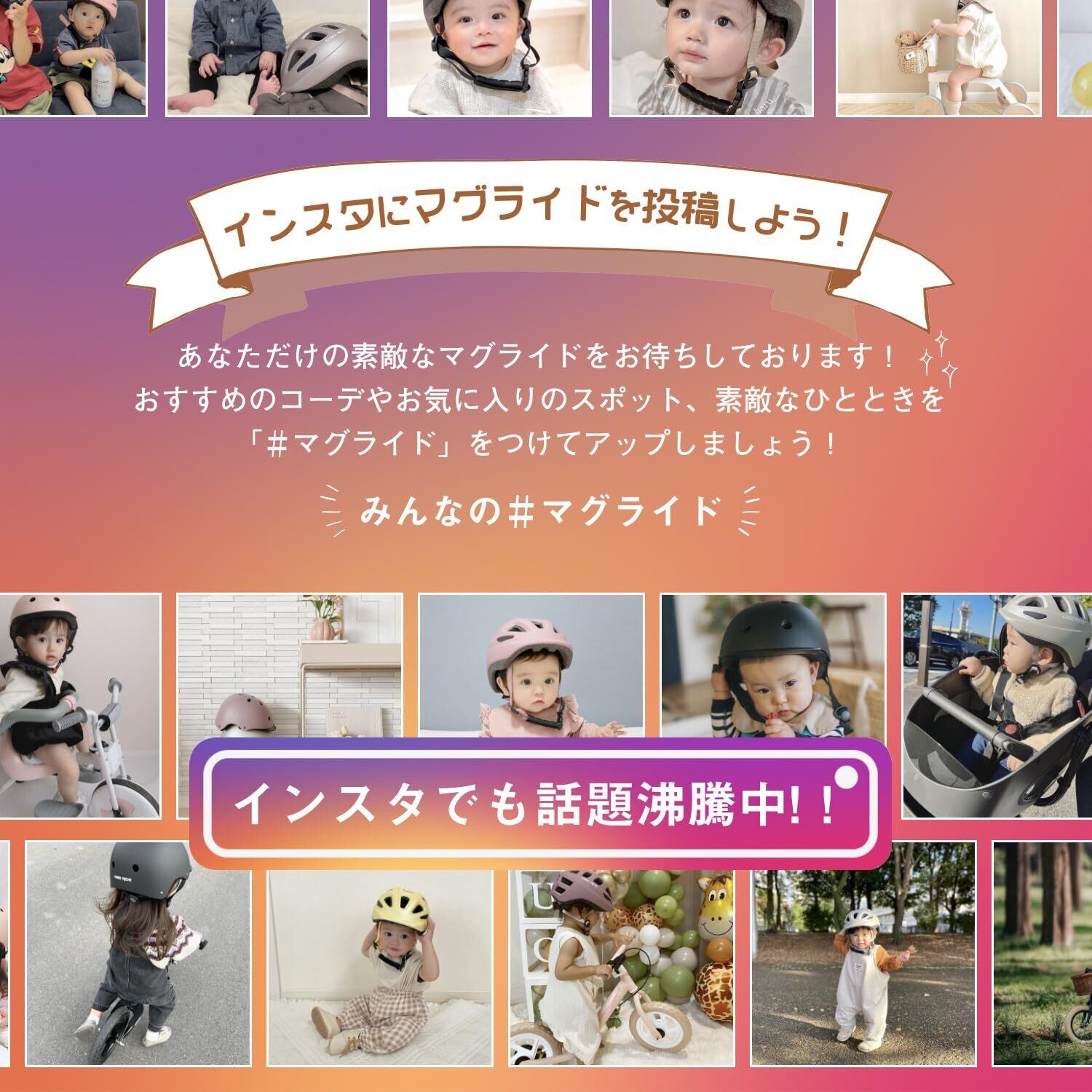 【MagRideは全て"日本人専用"設計】 日本人と外国人の頭の形は異なります。巷のほとんどのヘルメットは海外規格のためフィット感がイマイチな場合も・・・。Mag Ride シリーズは日本人の頭部の形状に合わせた専用設計のため頭にピッタリとフィット!着用時のズレなどでお子さまが嫌がることなく被ってくれます。※フィット感には個人差があります。