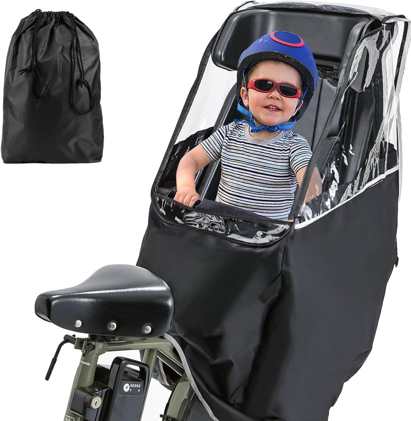 【優れた防水性能】: 入念な改良で、縫い目に防水ストリップを追加しており、大雨がカバーの中に入ってお子さまの両足を濡らさないようにしています。また、窓部分はすべて上質な防水ジッパーを使用しています!二重補強で、防水効果は市販のものよりはるかに良いです!雨の日を気にしなくて自転車でお子さまを送迎することができます。雨、寒さ、風だけではなく、紫外線もカットできます。