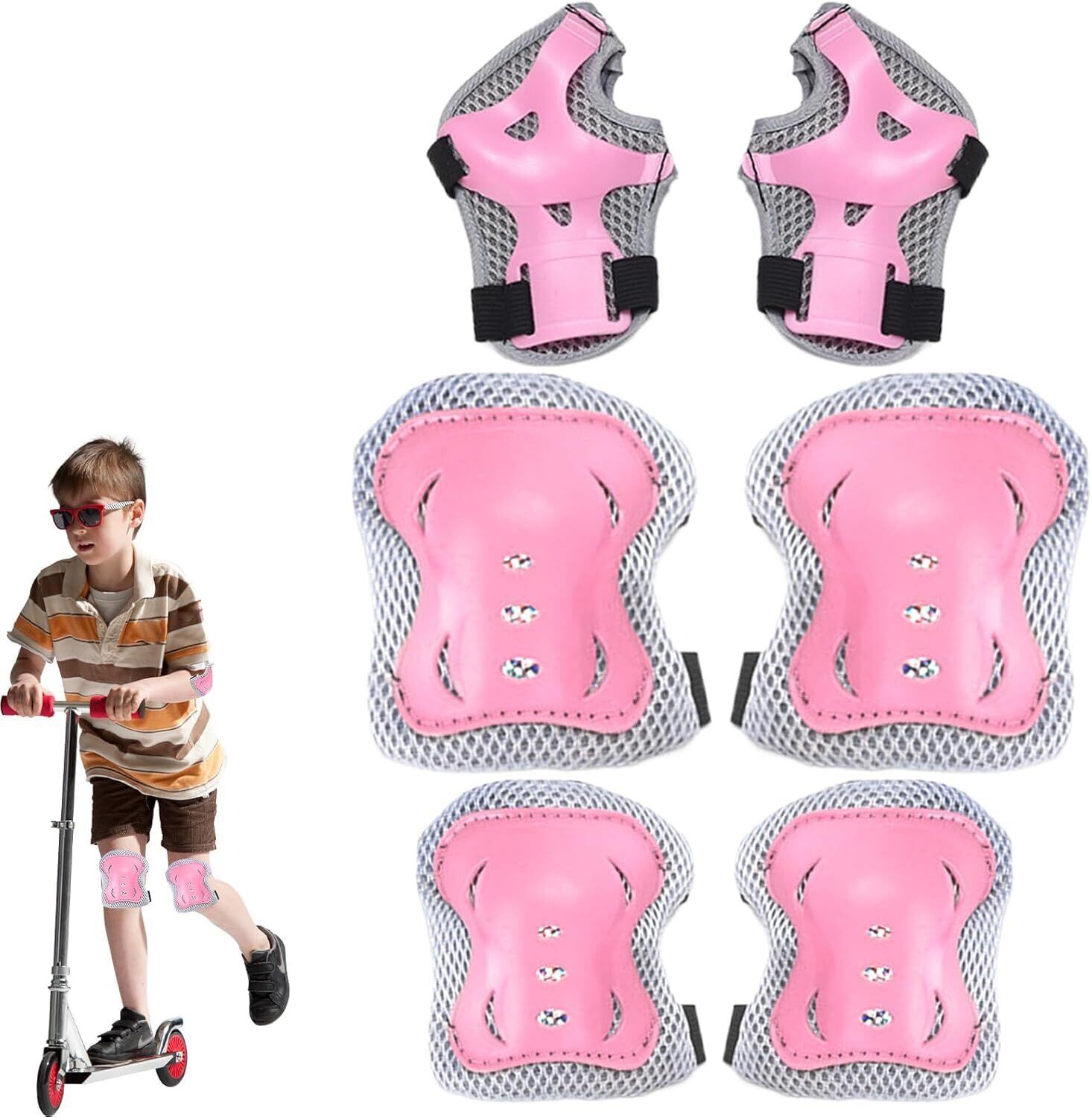 プロテク ター 子供用 6点セット 対象年齢3~12歳 自転車 スケートボード オートバイ スケート靴 プロテクター 手首/肘/膝用 子供用プロテクター 保護 収納袋付き (ピンクです)