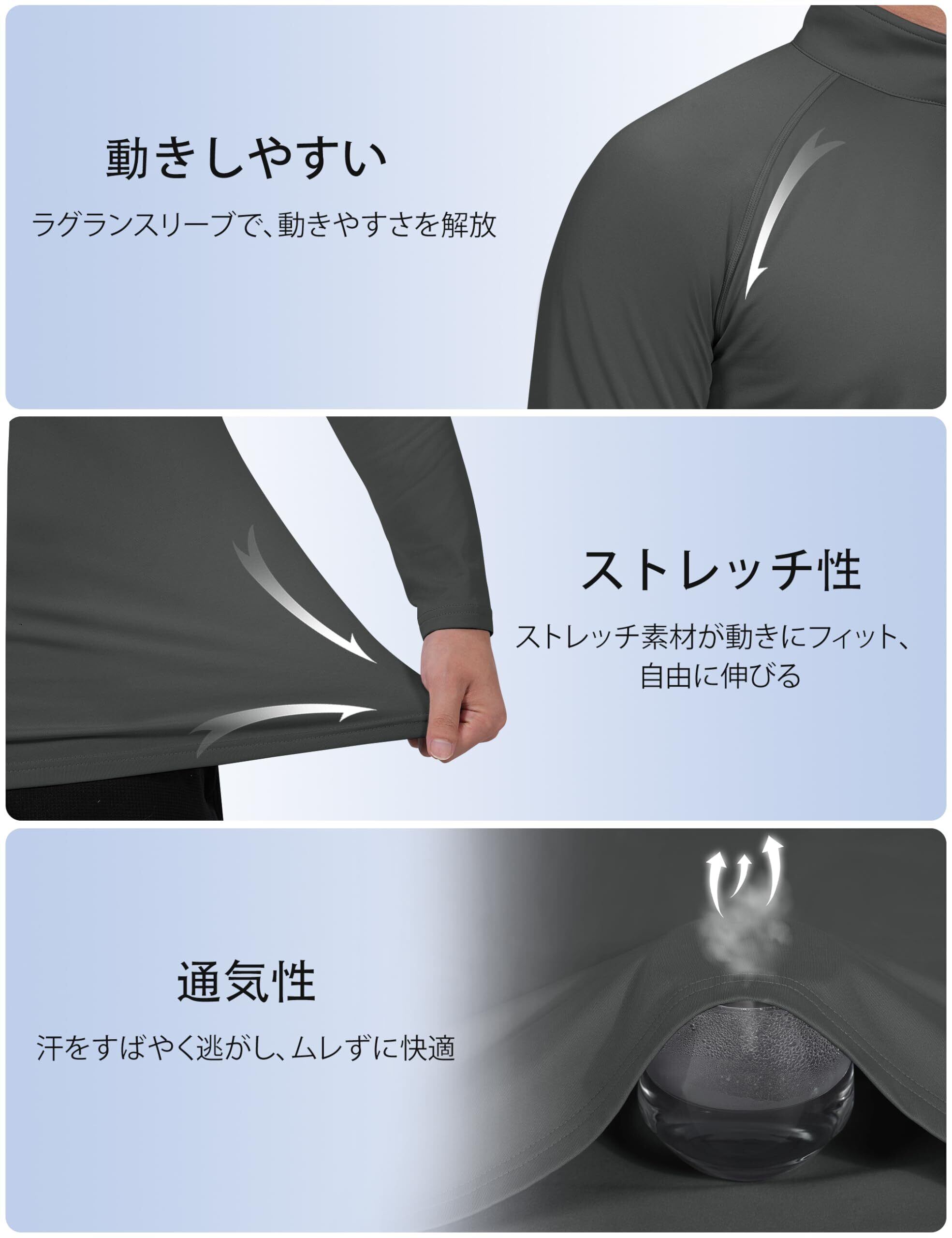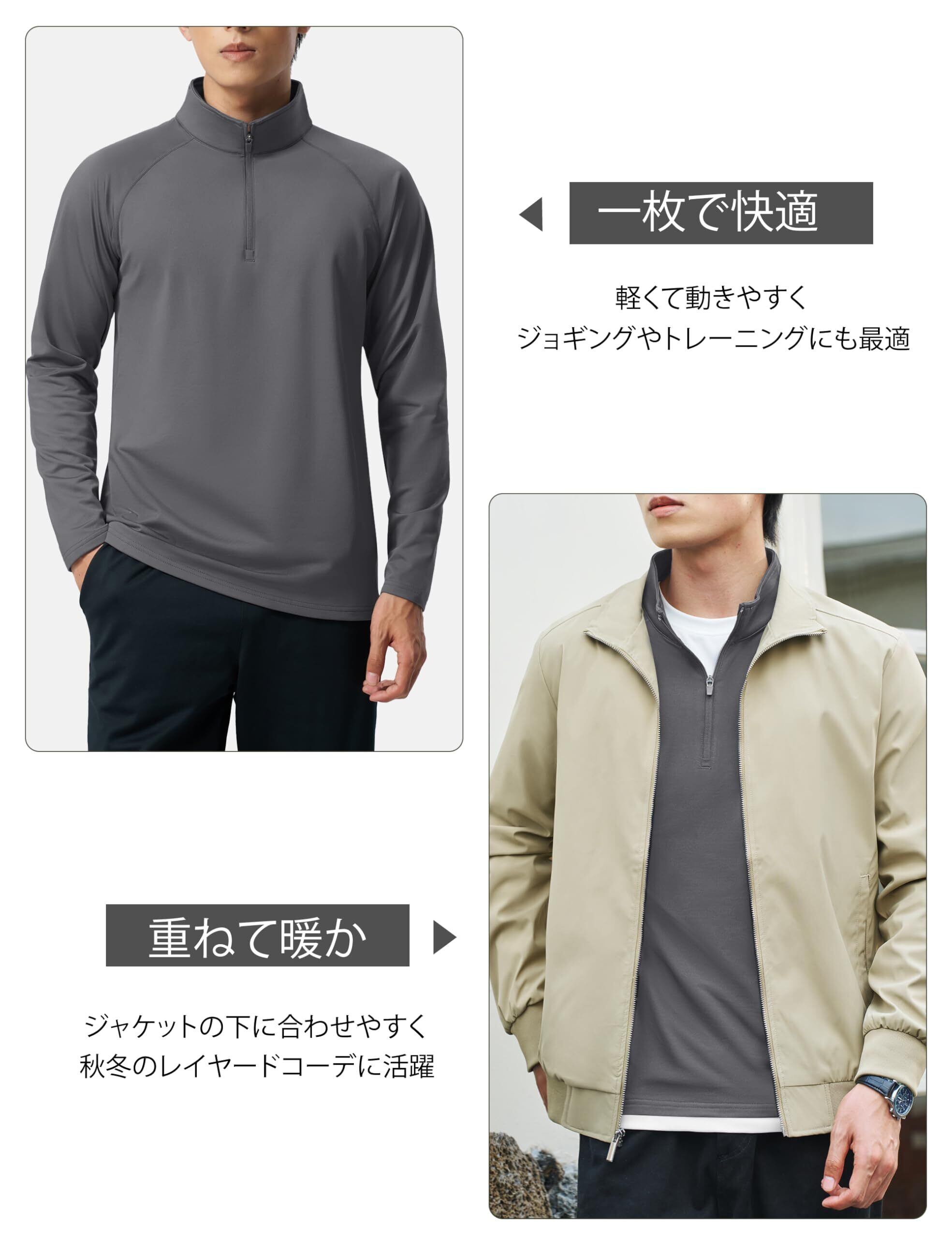 [KEFITEVD] 長袖tシャツ メンズ 裏起毛 トレーナー 防寒 インナー ハーフジップ ゴルフウェア ボアフリース 野球 アンダーシャツ スポーツ ランニングウェア ハイネック トップス 無地 春秋冬