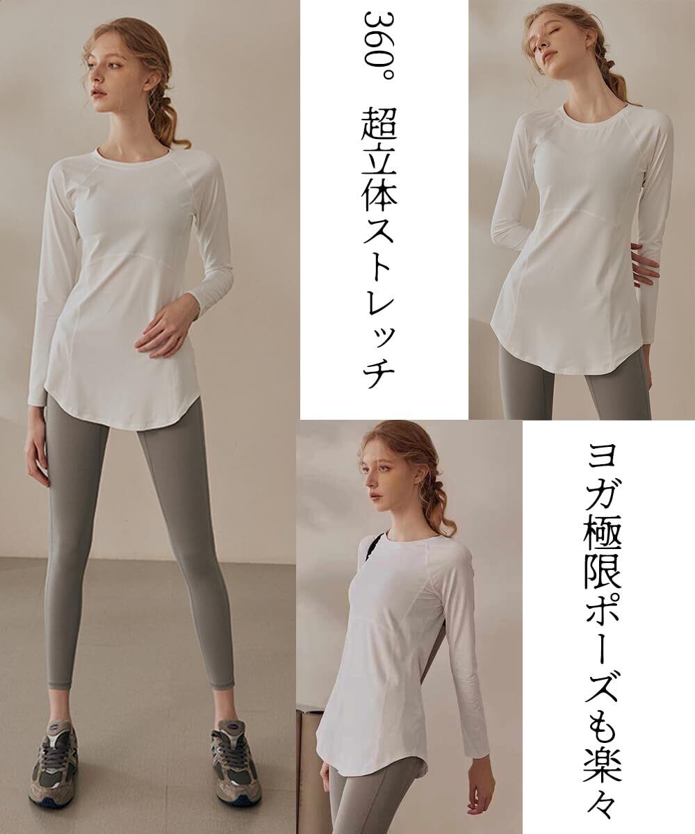 [Karsaer] ヨガウェア トップス スポーツTシャツ レディース 長袖 体形カバー スポーツ UVカット 伸縮性 ロング丈 ピラティス ジム トレーニング ランニング 吸汗速乾A0060